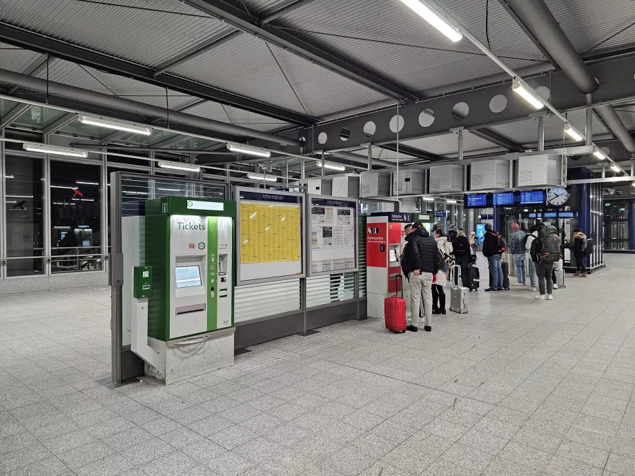 Bevor Sie das Flughafenterminal verlassen, können Sie auf der interaktiven Abfahrtstafel die aktuellen Abfahrten aller Linien vergleichen und abwägen, ob es sich lohnt, mit dem Autozug zum Bahnhof zu fahren oder ob Sie lieber die S-Bahn S11 direkt vom Terminal nehmen.