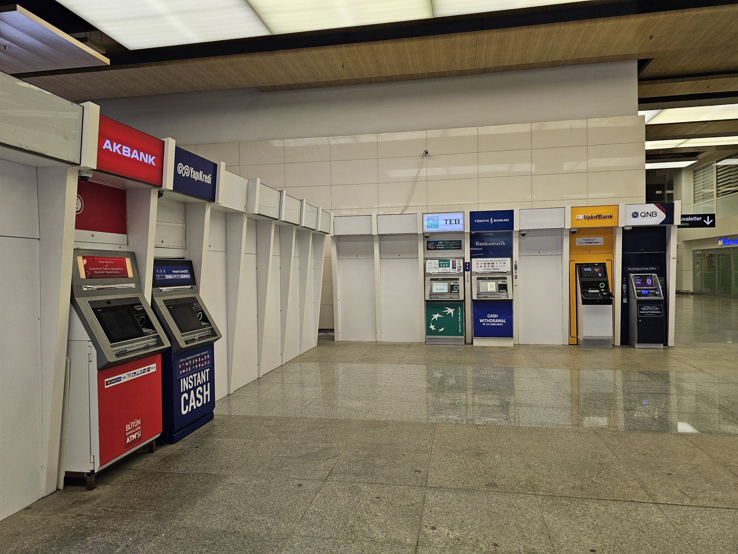 Geldautomaten der regulären türkischen Banken befinden sich an vielen Stellen in den Ankunftshallen der beiden Terminals.