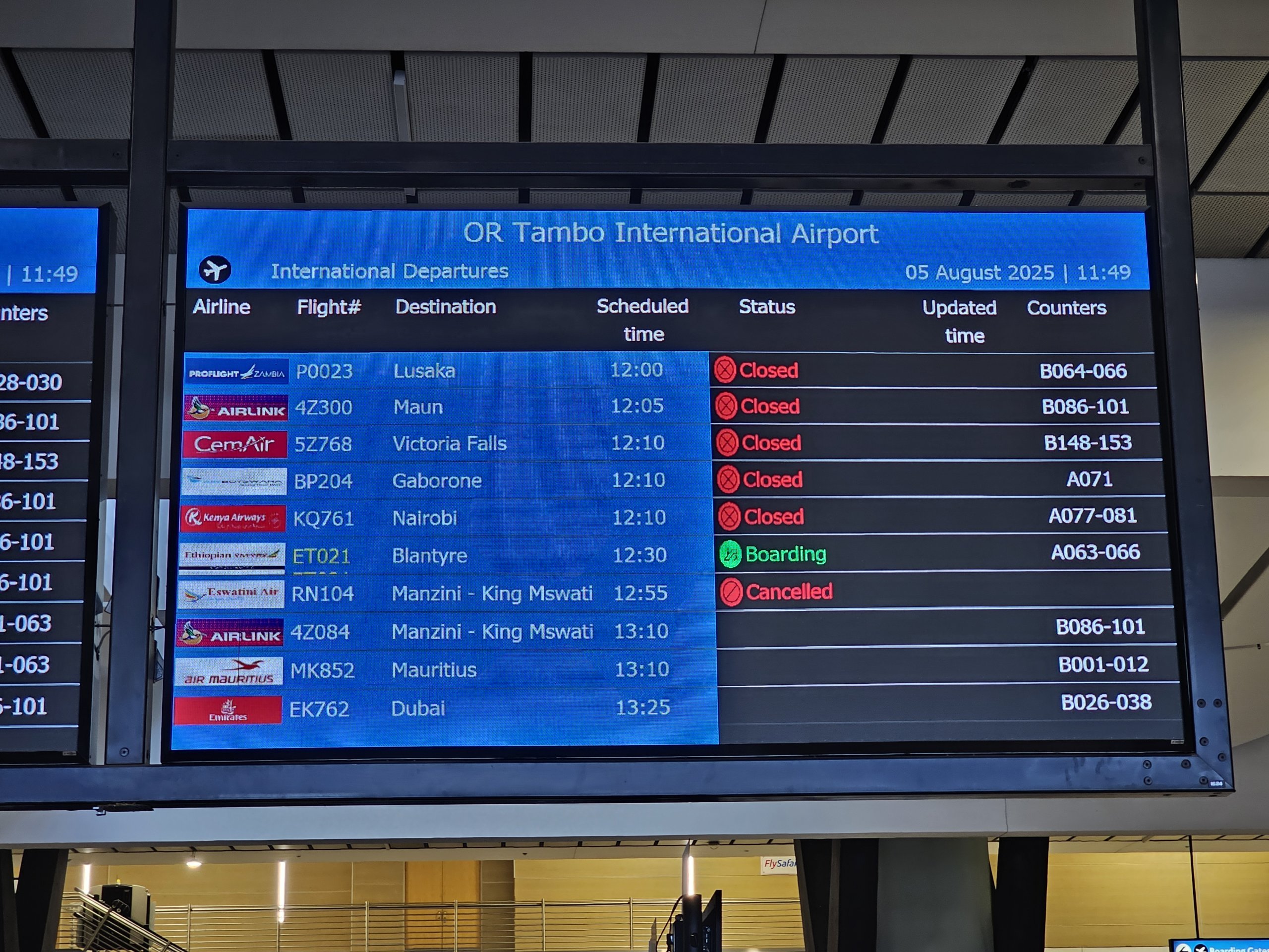 Ankünfte und Abflüge am Flughafen Johannesburg
