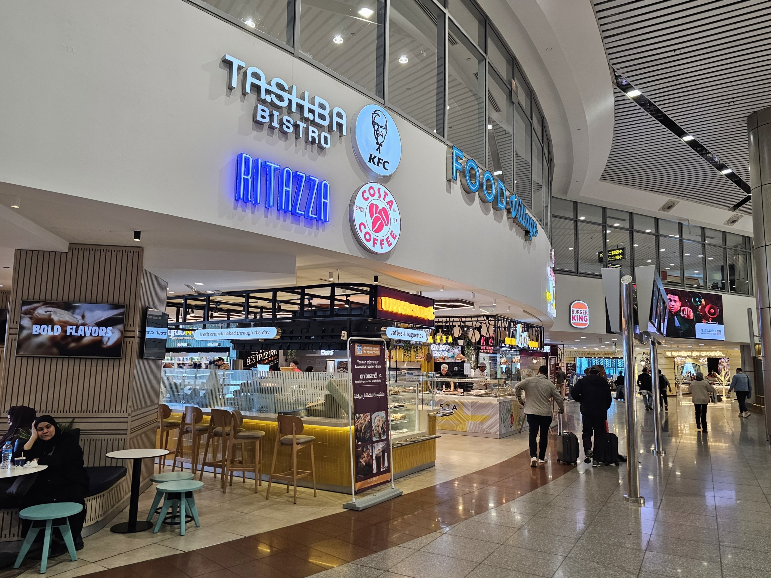 Die meisten Restaurants befinden sich hinter der Sicherheitskontrolle und sind in der Regel rund um die Uhr geöffnet.