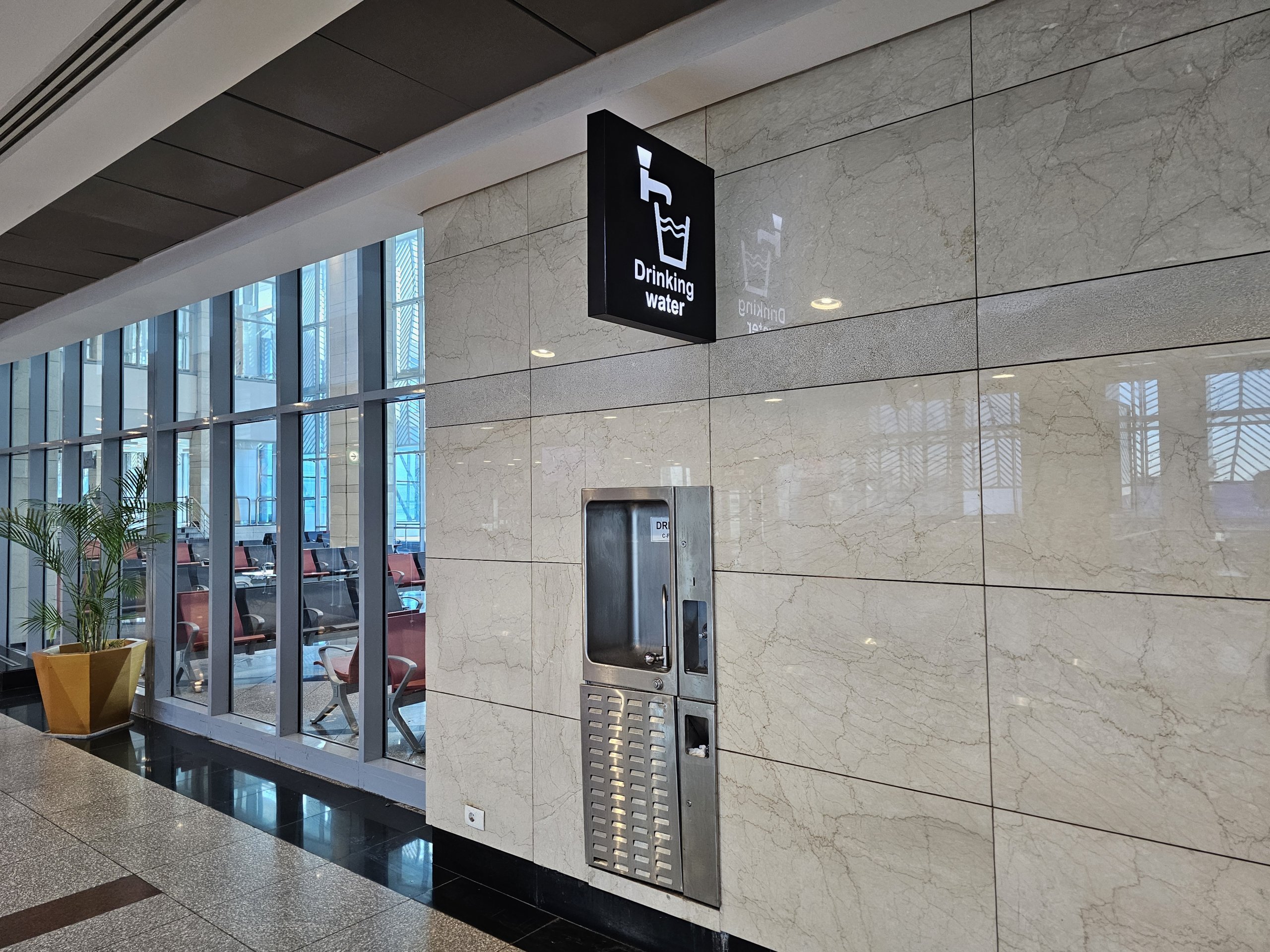 Trinkwasserbrunnen befinden sich an vielen Stellen in den öffentlichen und Transitbereichen aller Terminals.