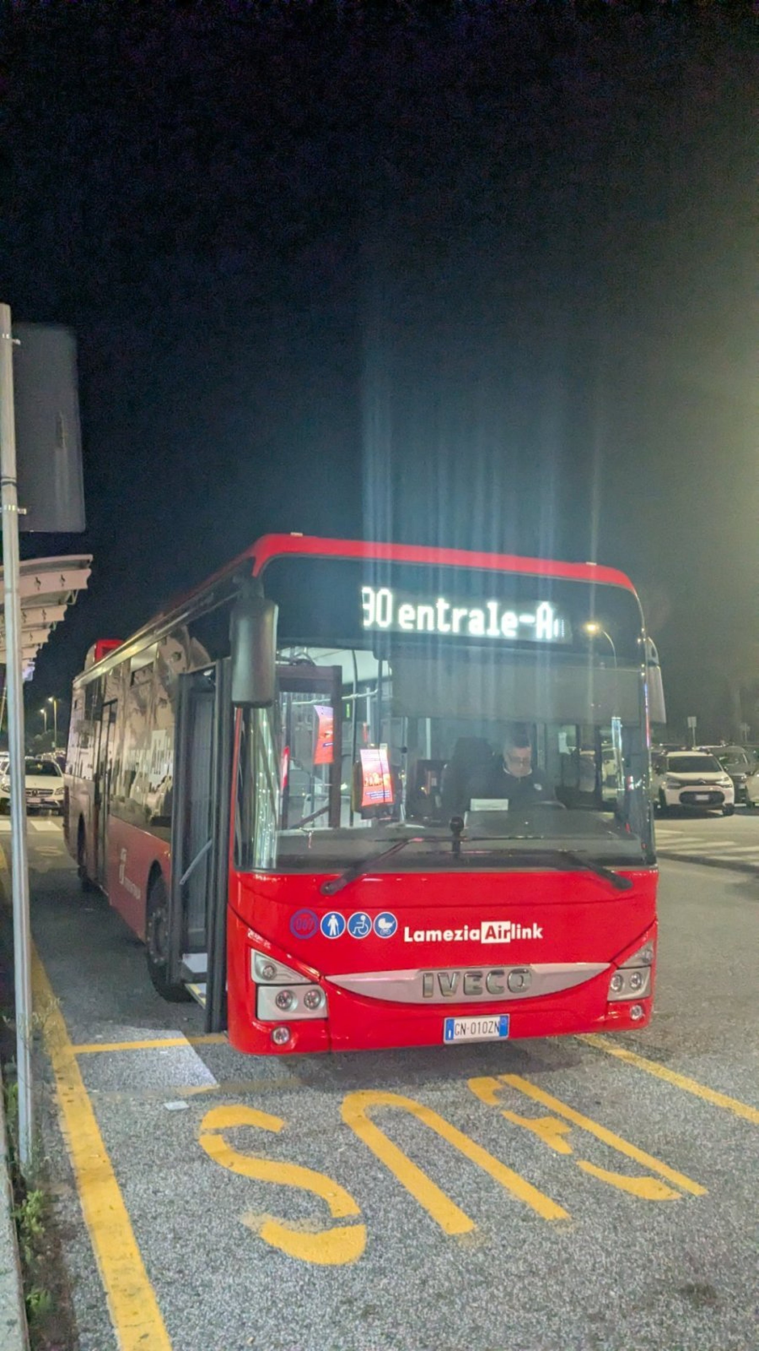 Obwohl die letzte Verbindung der Linie 90 vom Flughafen zum Bahnhof erst um 23:15 Uhr abfährt, fährt der letzte Bus vom Bahnhof ins Zentrum von Lamezia Terme um 22:20 Uhr. Nach dieser Zeit können Sie nur noch ein Taxi ins Zentrum nehmen.