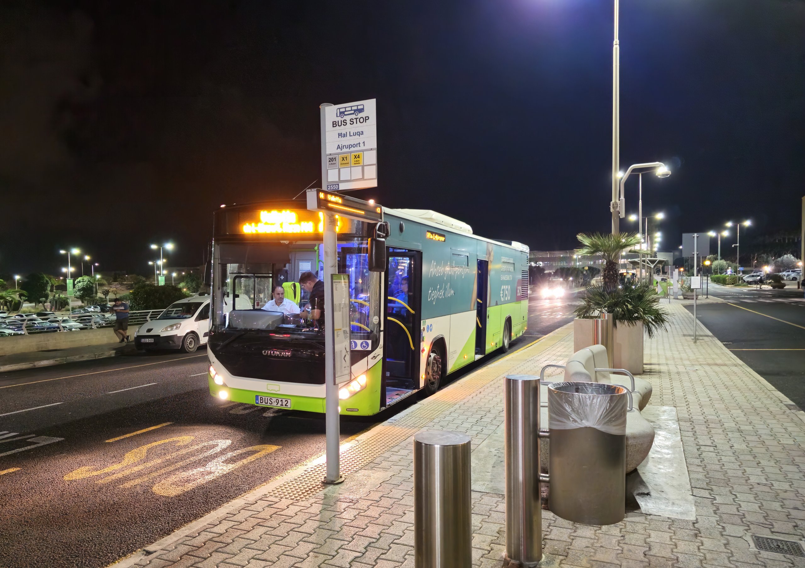Es gibt Busse zum Flughafen von der ganzen Insel. Offizielle und aktuelle Informationen finden Sie unter: publictransport.com.mt. Die Bushaltestellen befinden sich direkt vor dem Flughafengebäude und sind nicht zu übersehen.