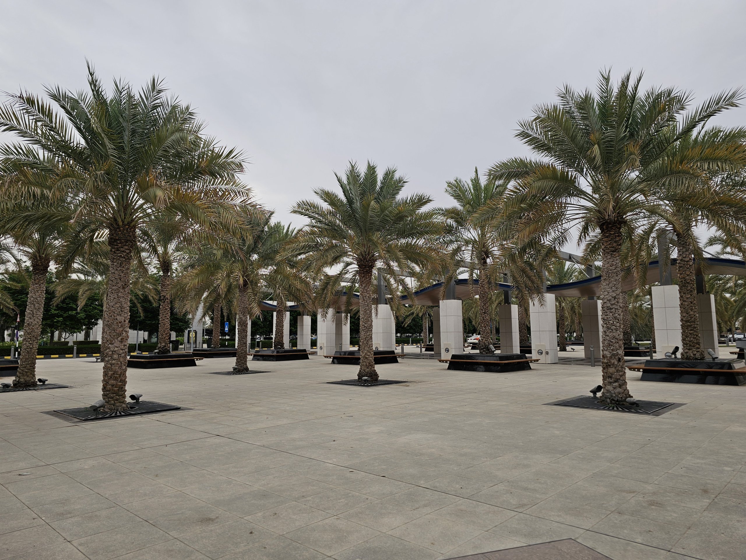 Im Untergeschoss außerhalb des Terminals können Sie sich in einem schön angelegten Park mit vielen Palmenbänken und einem Springbrunnen entspannen.
