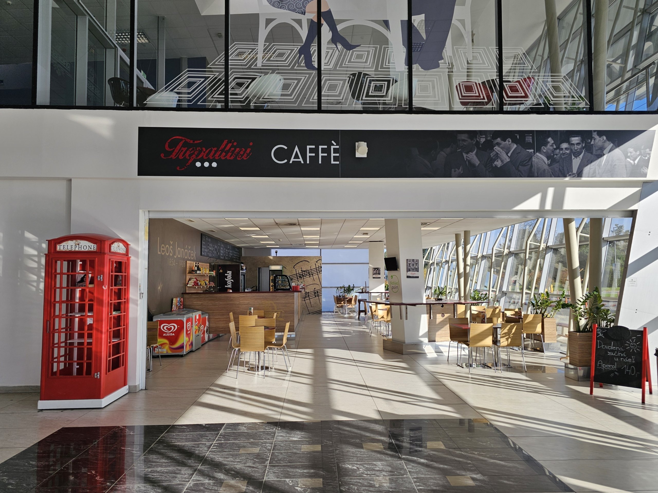 Im öffentlichen Bereich des Flughafens finden Sie das Café Fragollini, in dem Sie Baguettes, belegte Brötchen oder Getränke erhalten.