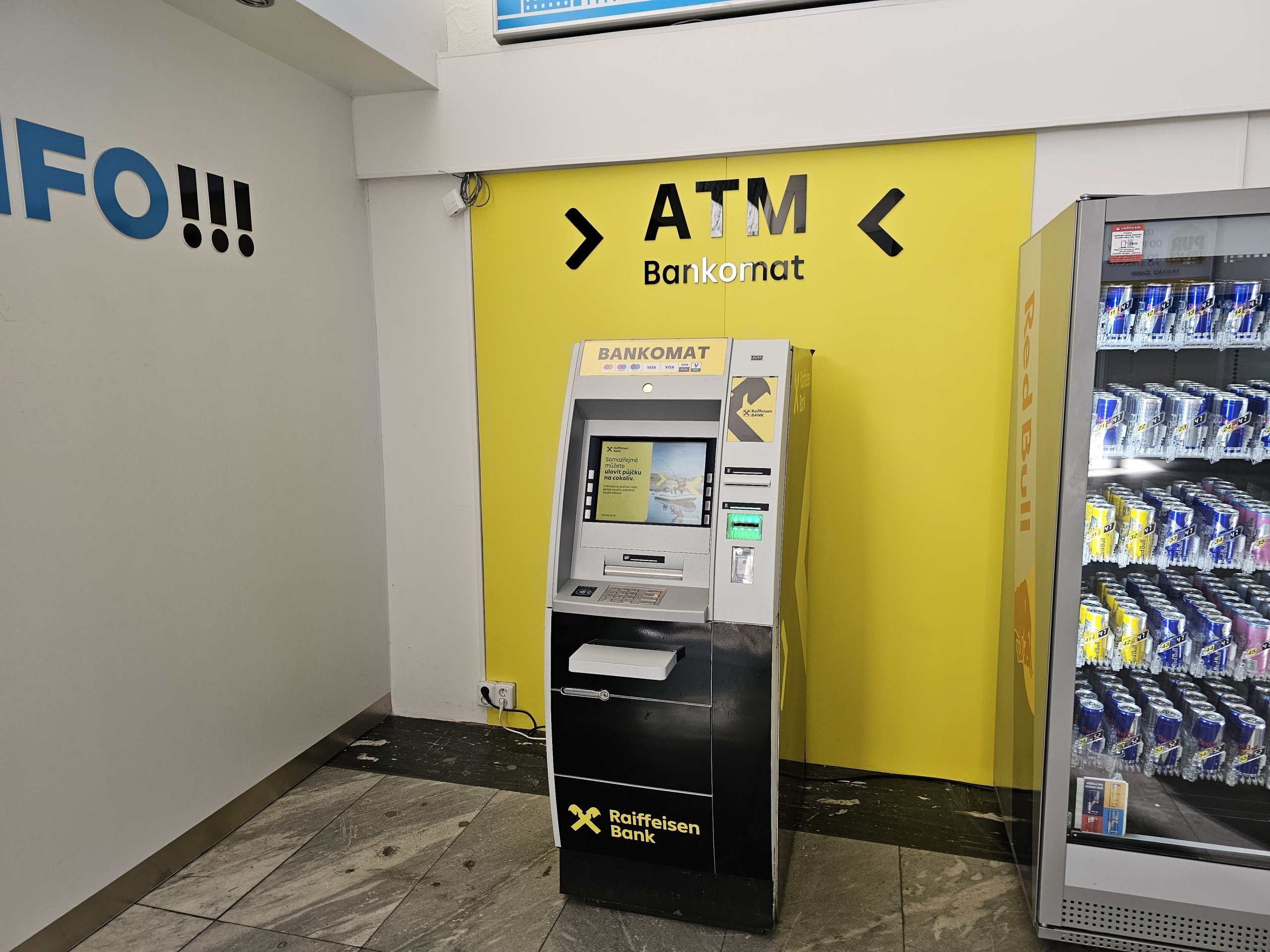 Sie können den Geldautomaten der Raiffeisenbank im öffentlichen Bereich der Ankunftshalle benutzen.