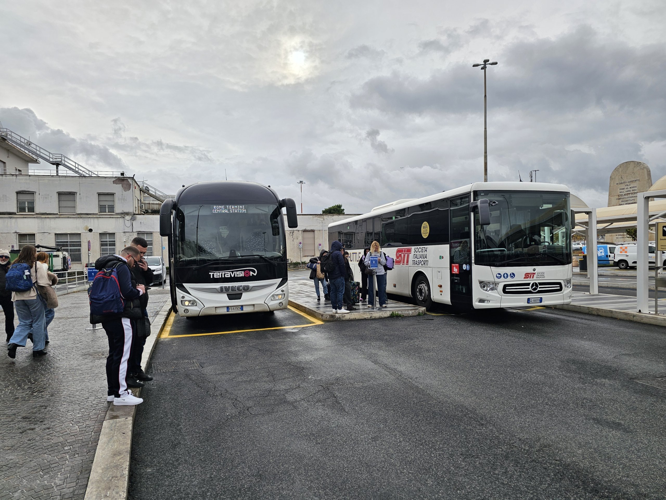 Am Bahnhof Termini halten alle Unternehmen in der Via Giovanni Giolitti (dieselben Haltestellen wie in Richtung Flughafen Fiumicino, also stellen Sie sicher, dass Sie in den richtigen Bus einsteigen).