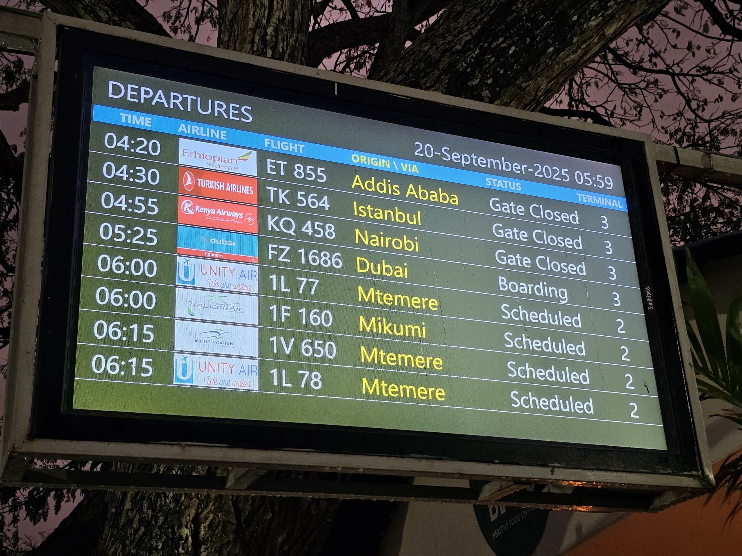 Suchen Sie nach Ankünften oder Abflügen zum/vom Flughafen Sansibar online in Echtzeit, um Verspätungen oder Boardingzeiten zu überprüfen? Die offizielle Website des Flughafens bietet immer die genauesten Informationen: