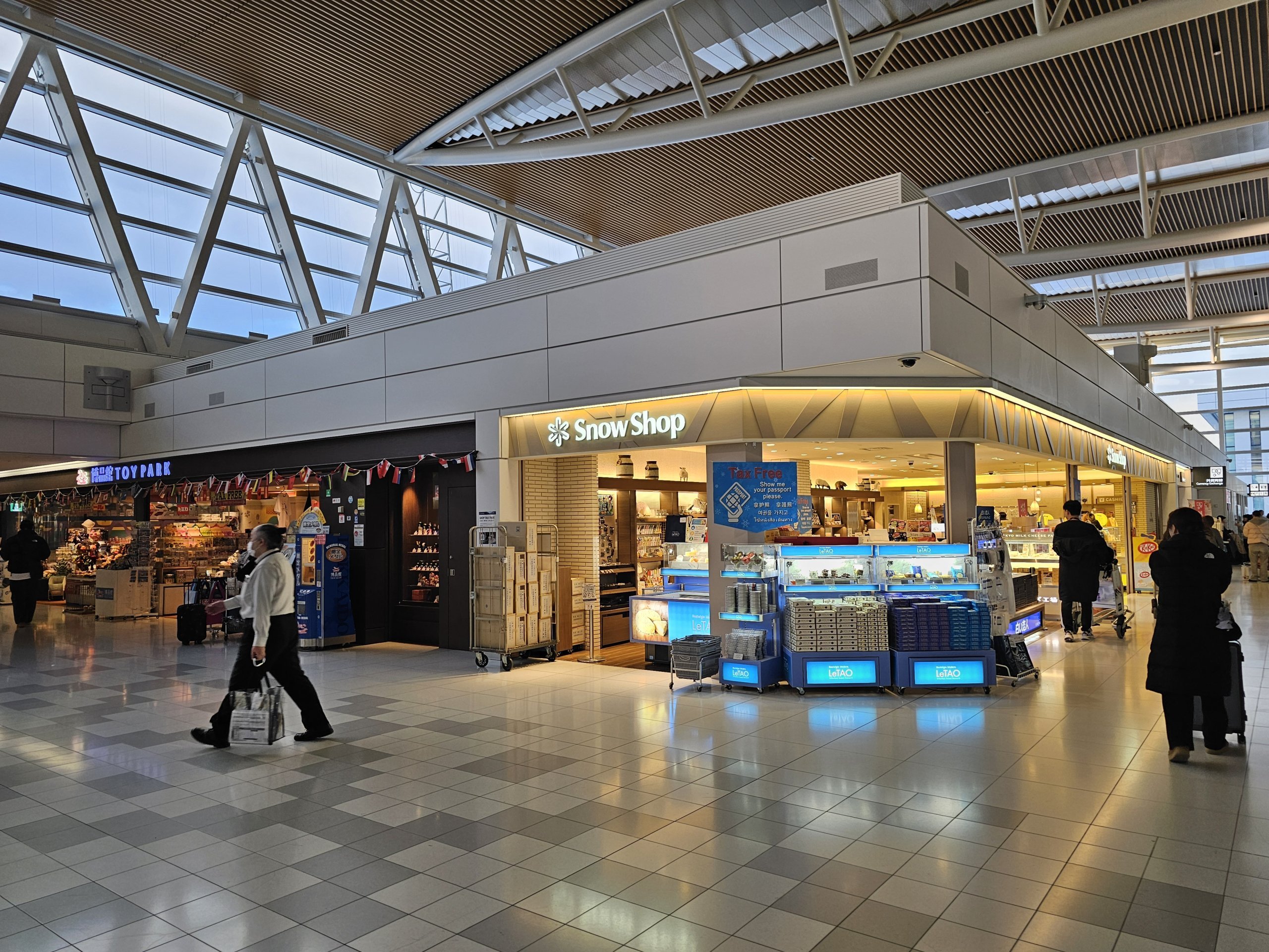 Die große Einkaufspassage, in der sich auch eine Uniqlo-Filiale befindet, liegt in der Passage zwischen dem nationalen und dem internationalen Terminal im öffentlichen Bereich.