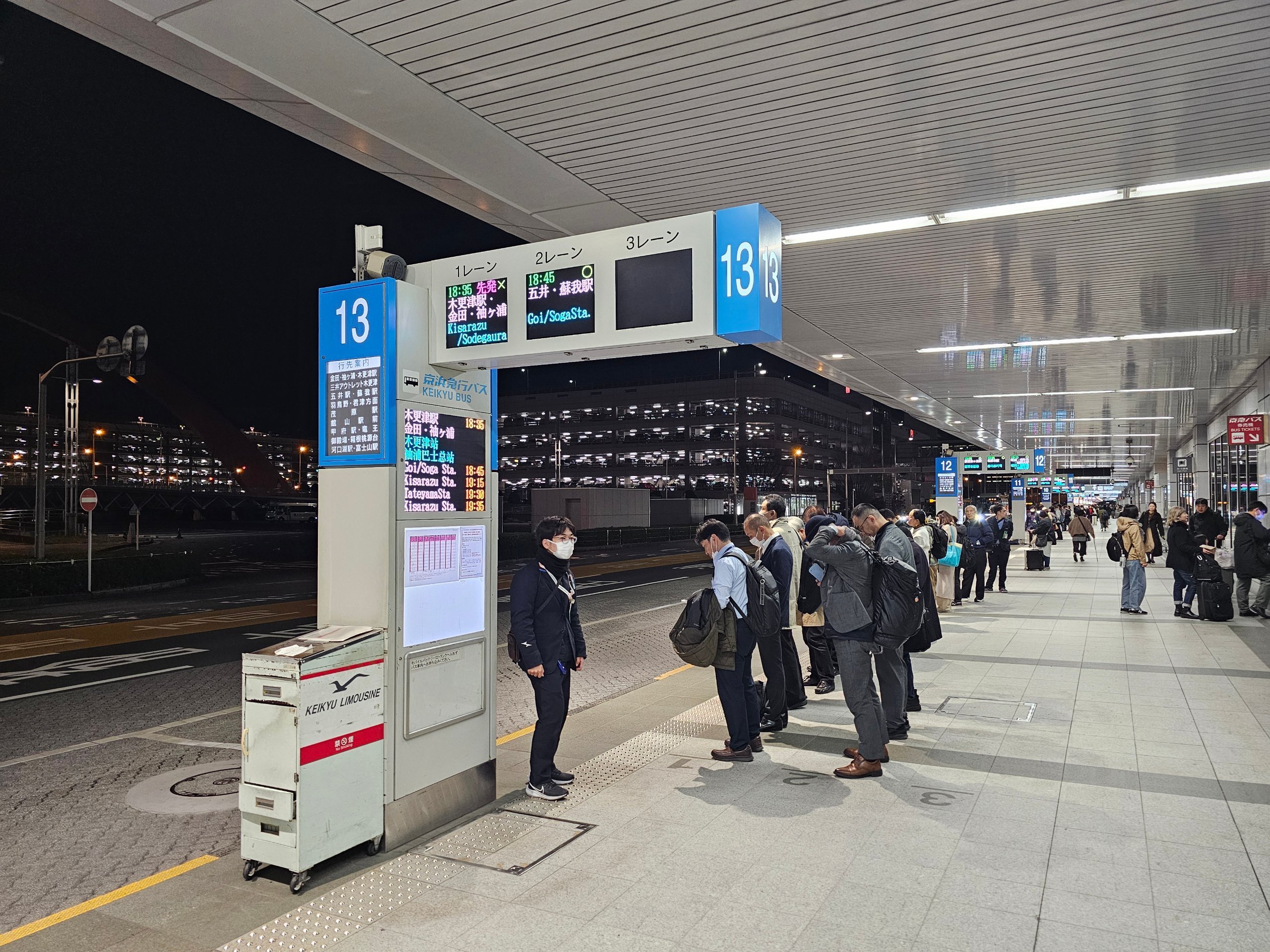 - Letzter Zug vom Flughafen - 23:48 Uhr bis Bahnhof Shinagawa; 0:10 Uhr bis Bahnhof Keikyu-Kamata (Abfahrtszeiten ab Terminal 3 immer 2 Minuten später)