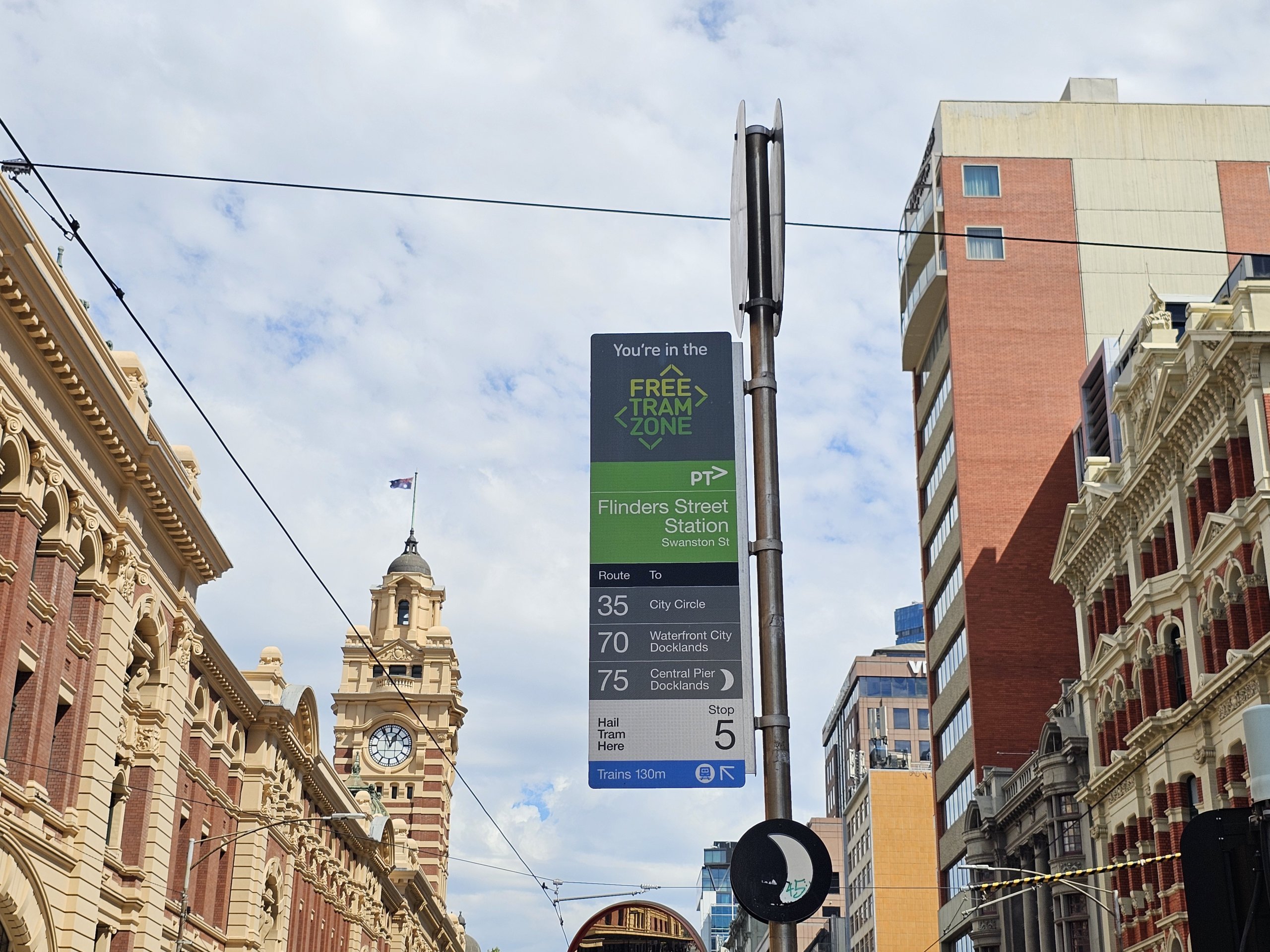 Innerhalb des Central Business District, dem zentralen Teil von Melbourne, fahren Sie kostenlos mit der Straßenbahn!