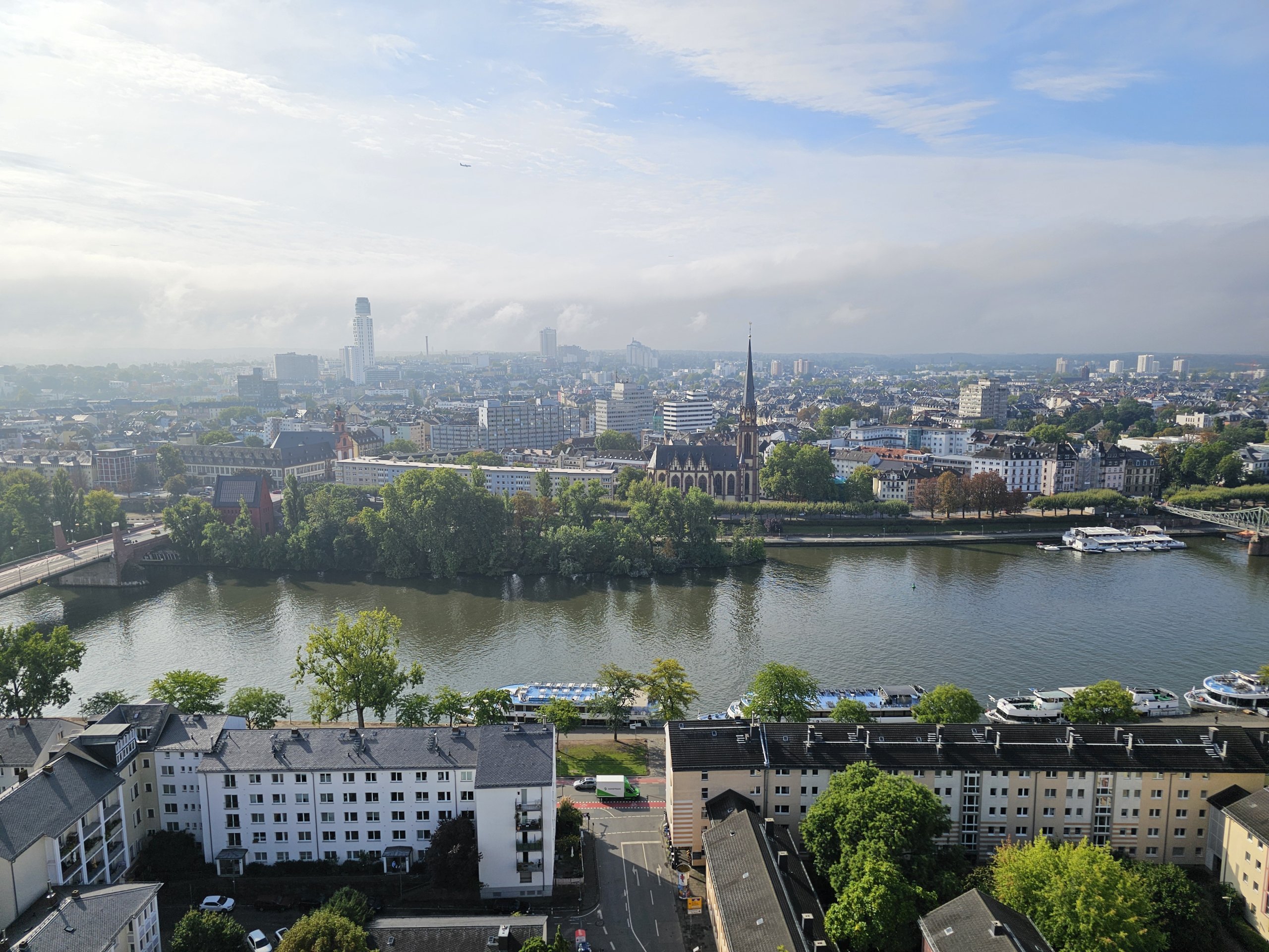 Von hier aus hat man den besten Blick auf die moderne Frankfurter Skyline, den Main und den südlichen Teil der Stadt.