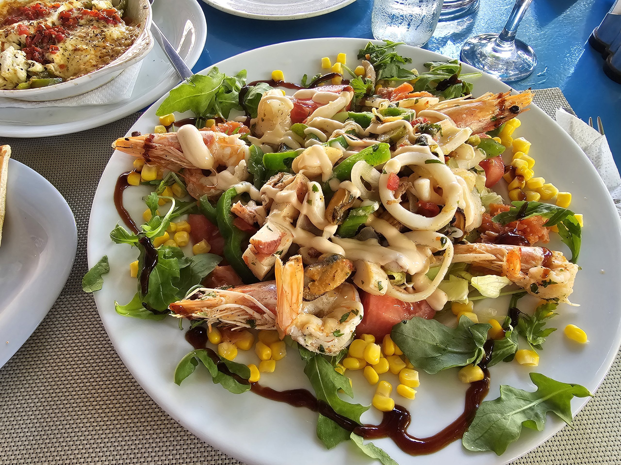 Meeresfrüchte - neben Fisch bieten alle Restaurants natürlich auch Gerichte (meist Salate) mit anderen Meeresfrüchten wie Muscheln, Krabben und Tintenfisch an.