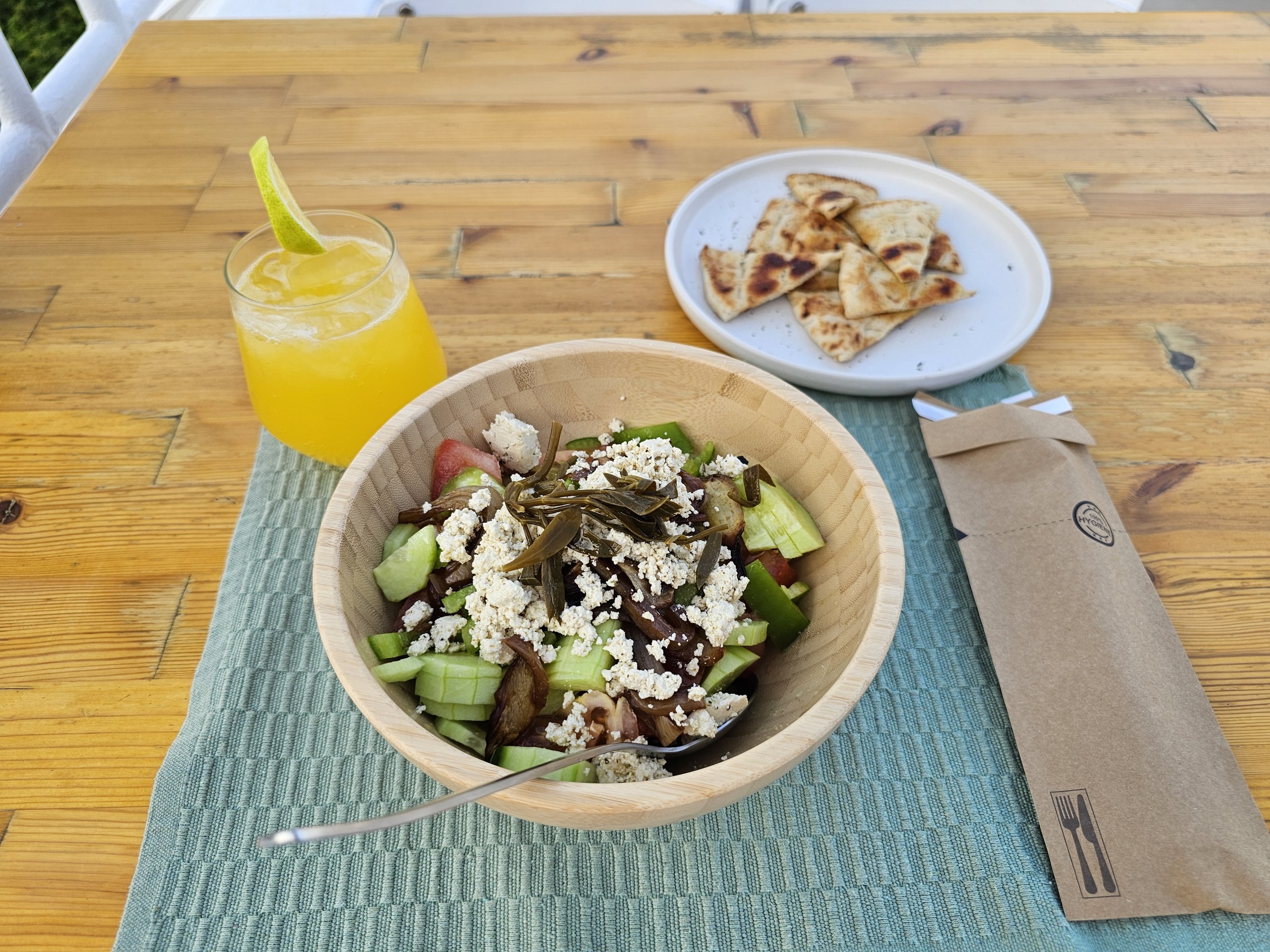 Griechischer Salat - der klassische griechische Salat ist allgegenwärtig und wird oft anstelle einer Beilage gegessen. Man kann sagen, dass er dem gehackten Salat aus Bulgarien sehr ähnlich ist, nur weniger schmackhaft. Er besteht aus Fetakäsestücken, Tomaten, Paprika, Gurken, Oliven und Zwiebeln.