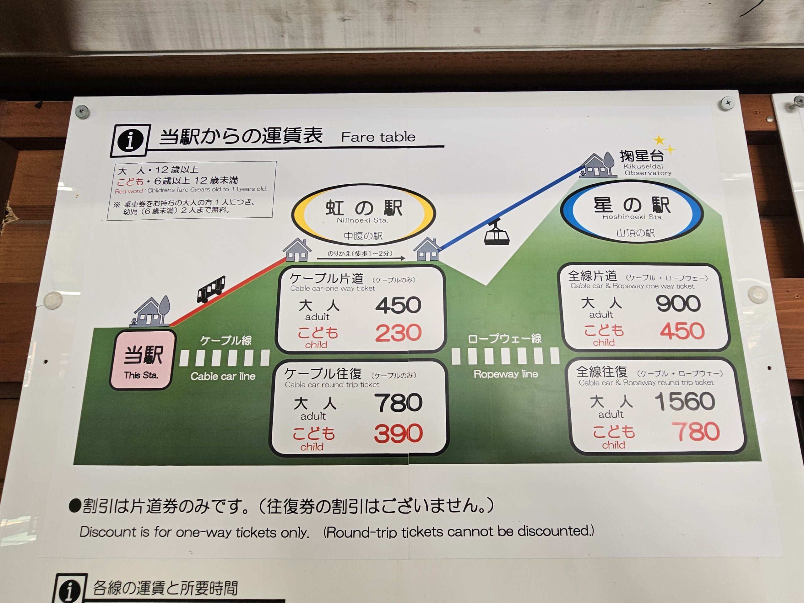 - 780 jpy - Hin- und Rückfahrt nur bis zur halben Höhe (Standseilbahn)