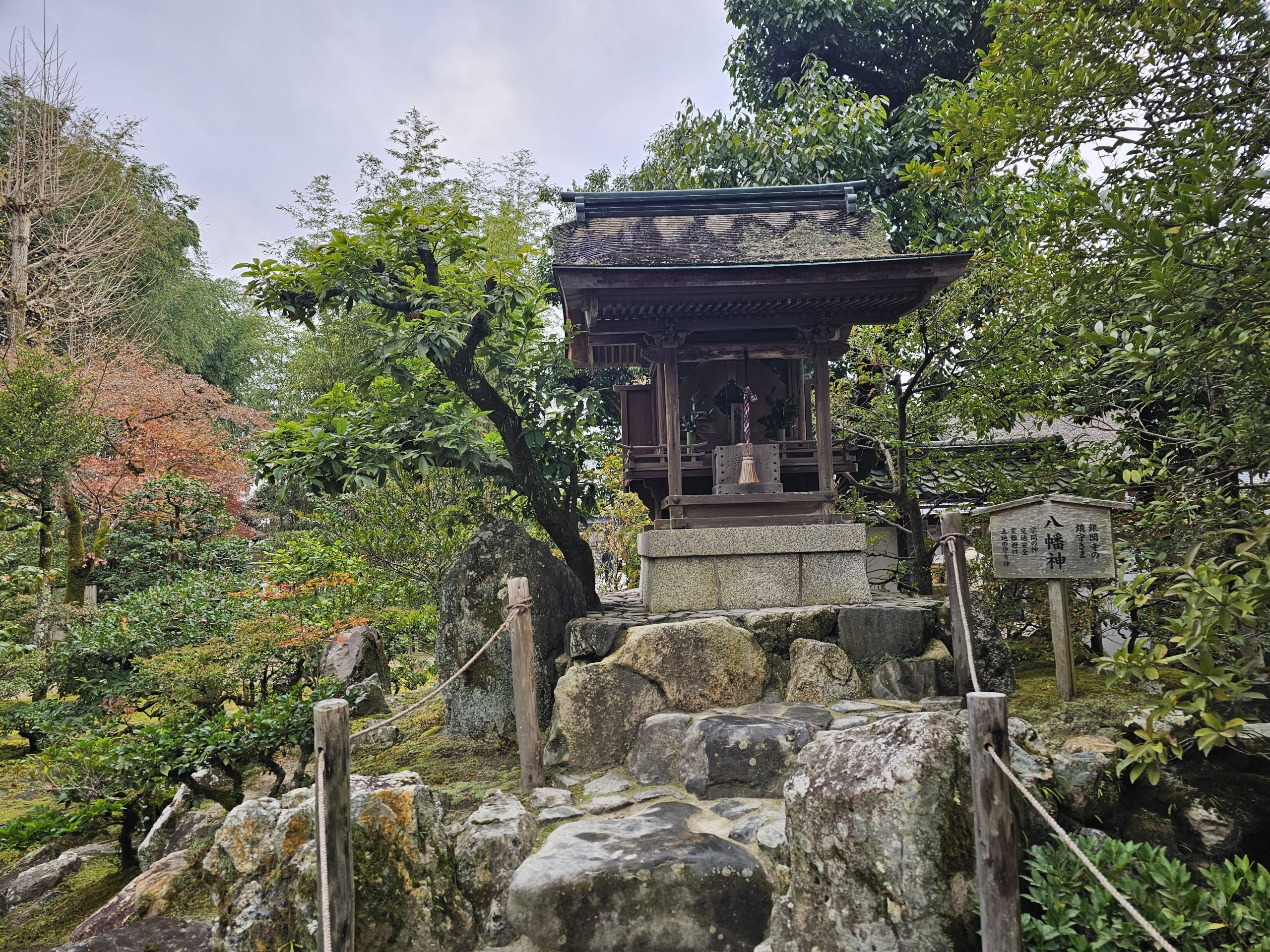 In Wirklichkeit ist dieser Pavillon jedoch größtenteils aus Holz und nicht mit echtem Silber bedeckt, wie der Goldene Pavillon des Kinkaku-ji, der mit echtem Gold bedeckt ist.