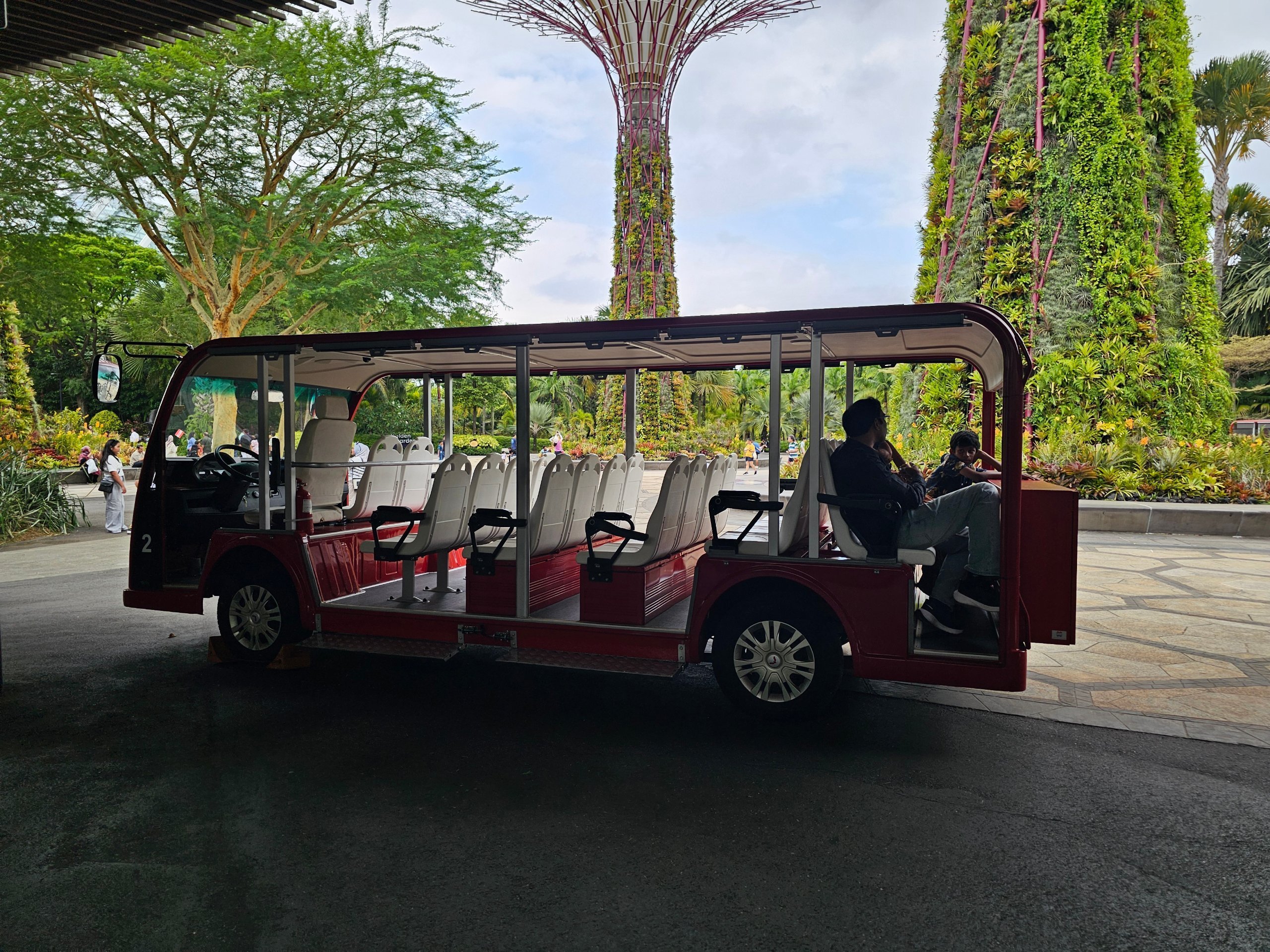 Am Haupteingang, der sich auf der Südseite befindet (auf der gegenüberliegenden Seite des Marina Bay Sands-Hotels), können Sie auch für 10 sgd eine elektrische Trolley-Tour buchen. Am Eingang gibt es auch Schließfächer zur Gepäckaufbewahrung.