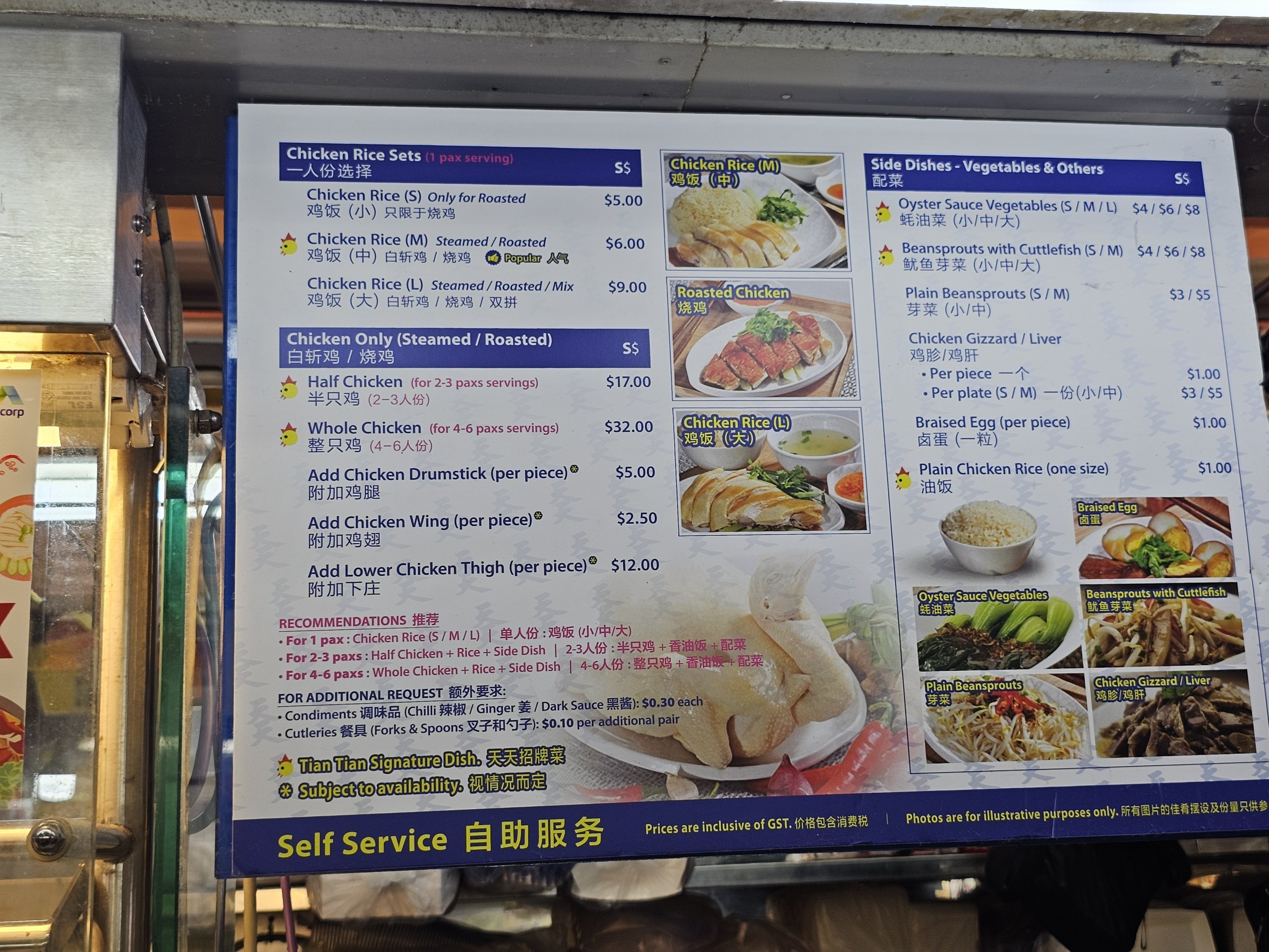 Der berühmteste von ihnen ist Tian Tian Hainanese Chicken Rice, einer der beliebtesten Stände in ganz Singapur. Hier können Sie den berühmten Hainanese Chicken Rice probieren, ein Gericht, das oft als eines der Nationalgerichte Singapurs bezeichnet wird.
