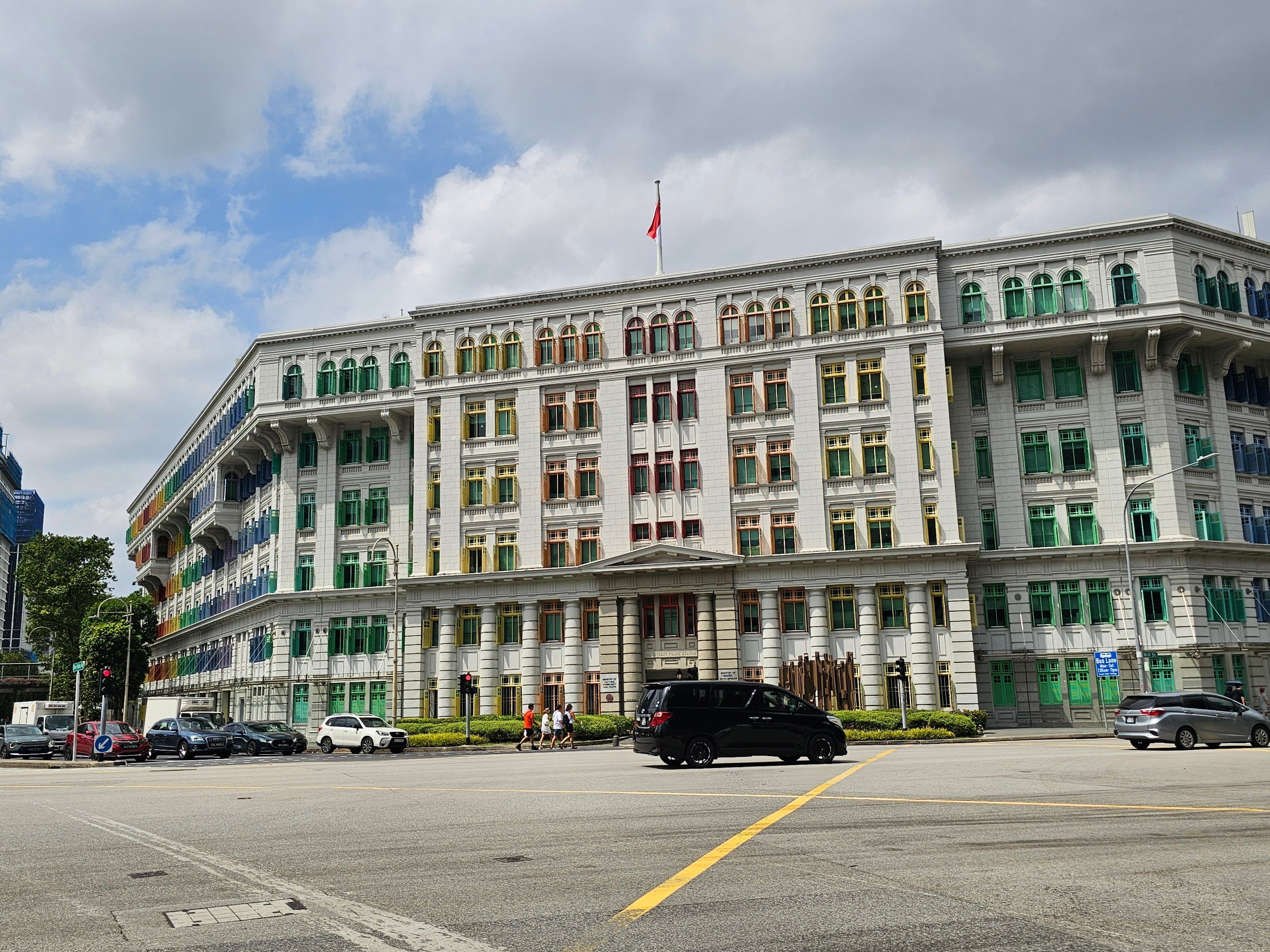 Die Old Hill Street Police Station ist eine ehemalige Polizeistation, die heute vor allem an ihrer Fassade zu erkennen ist - Hunderte von in verschiedenen Farben gestrichenen Fenstern machen sie zu einem der fotogensten Gebäude im Zentrum.