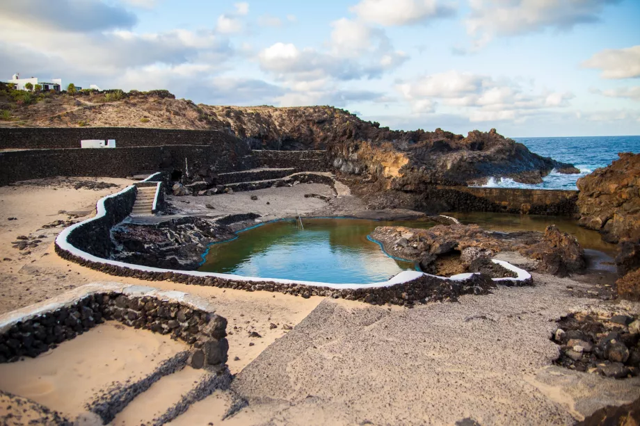 Obwohl die Küste unregelmäßig mit schwarzem Lavagestein bedeckt ist, ist der Zugang von den Stränden zum Meer sandig und sehr allmählich.