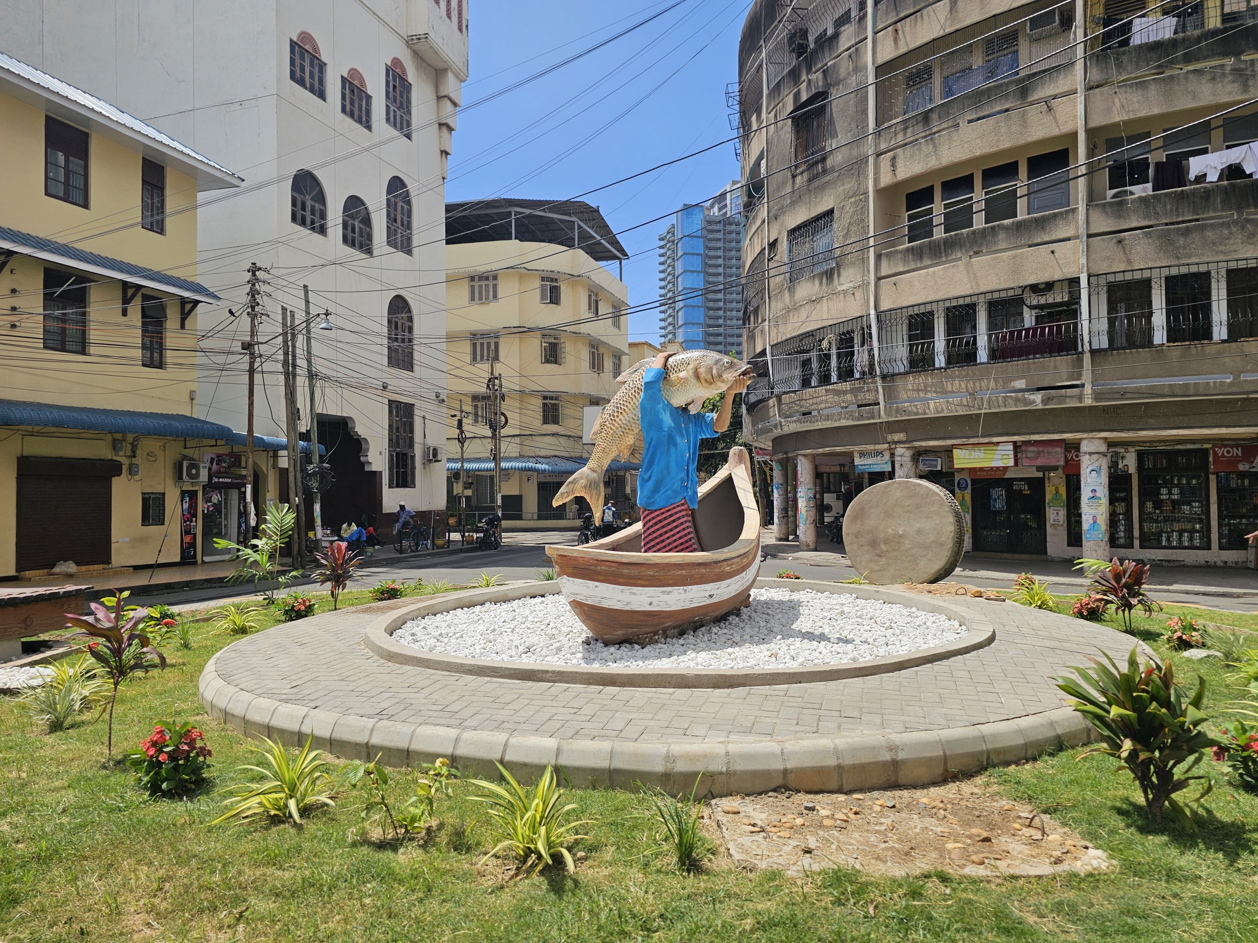 Viele der Kreisverkehre sind mit skurrilen Statuen aus dem Leben der Einheimischen geschmückt - zum Beispiel mit Fischer-, Kokosnuss- und Haifischstatuen.