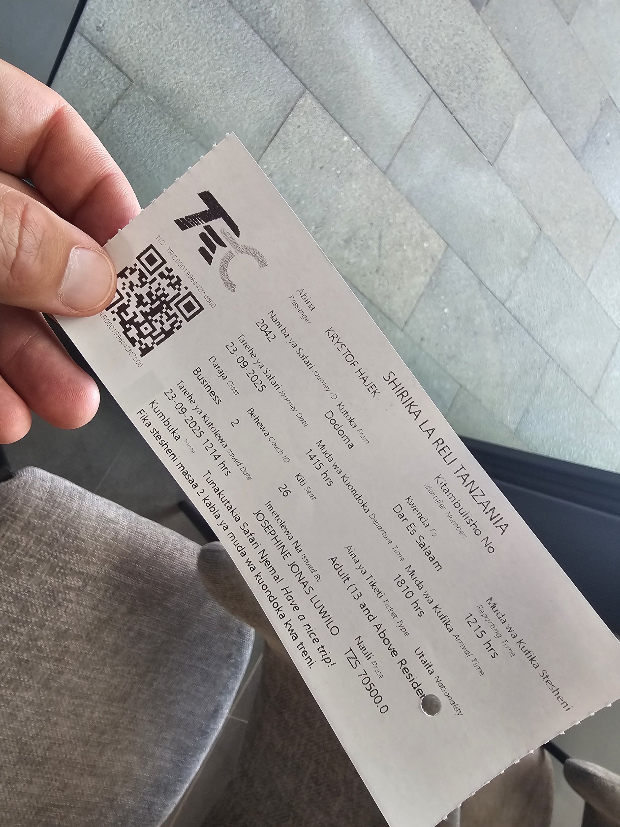 Fahrkarten für moderne SGR-Züge können auch über Drittanbieter wie 12go.asia gekauft werden, die wir bei Reisen in Asien gerne nutzen. In Tansania funktionierte das jedoch überhaupt nicht gut. Diese Website vermittelt Zugtickets über einen lokalen Mittelsmann, aber selbst nach mehrmaligem Drängen schickte er das Ticket nicht und ich musste am Bahnhof ein neues Ticket kaufen.