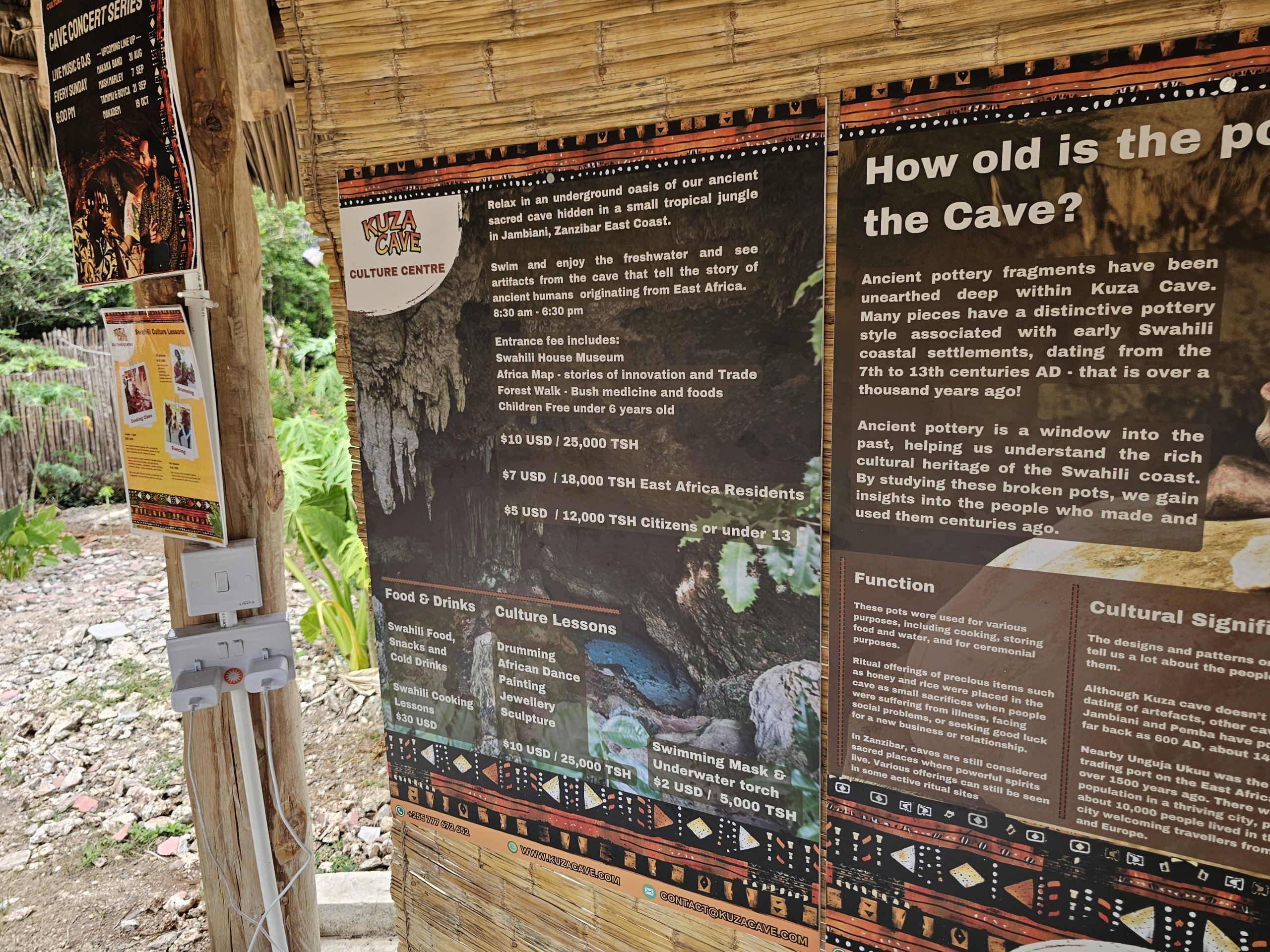 Die Kuza-Höhle ist nur etwa 1 km vom Jambiani-Resort entfernt und die Hauptattraktion ist das Schwimmen in dem natürlichen unterirdischen Fluss, der einen kleinen See am Boden der Höhle bildet.
