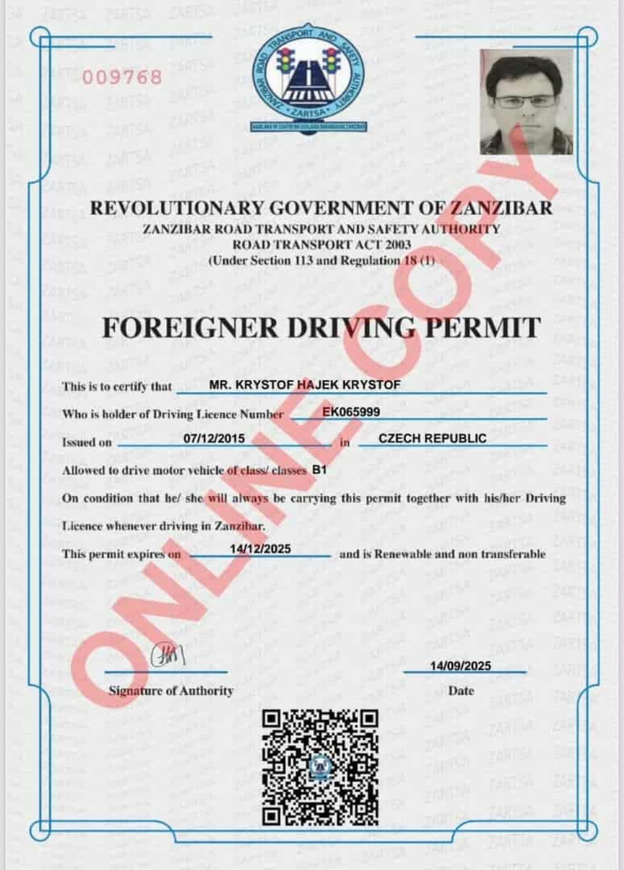 Bei der Kontrolle muss man seinen nationalen Führerschein und die lokale sansibarische Genehmigung vorzeigen, die man einfach auf seinem Handy vorzeigen muss.