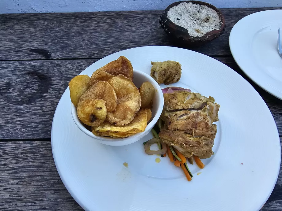 Da ich Fisch liebe, war der Hauptgang ein Selbstläufer - der Tagesfang. Die Würzung war fabelhaft, und die Kartoffelchips waren es auch!