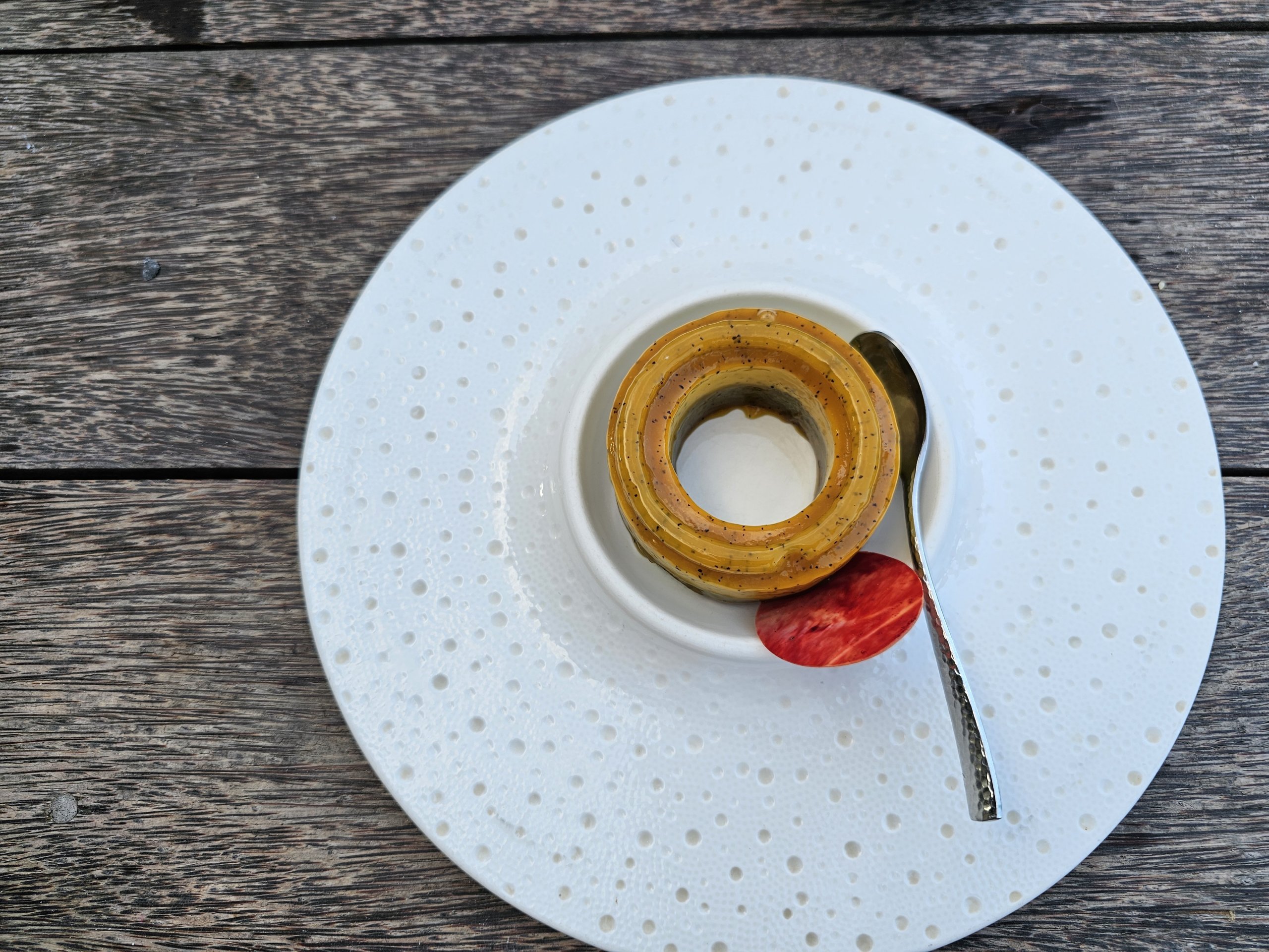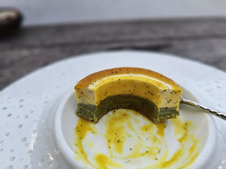 Aber das Beste war eindeutig das Dessert. Wahrscheinlich eine der besten, die ich je gegessen habe. Sie finden es auf der Speisekarte unter dem Namen Zanzibar Passion Ring und Sie bekommen eine Maracuja-Pistazien-Sahnetorte. Hervorragend.