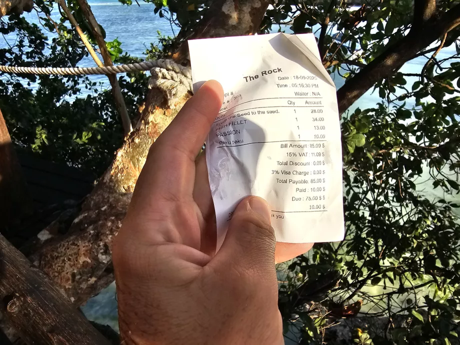 Ich empfehle, klassische Strandschuhe zu tragen - also Flip Flops oder Hausschuhe. Mit trockenen Füßen kann man das Boot nicht betreten, und selbst wenn man bei Ebbe auf dem Steg läuft, kann eine Welle reinkommen. Flip Flops sind definitiv das praktischste Schuhwerk für den Besuch des Restaurants!