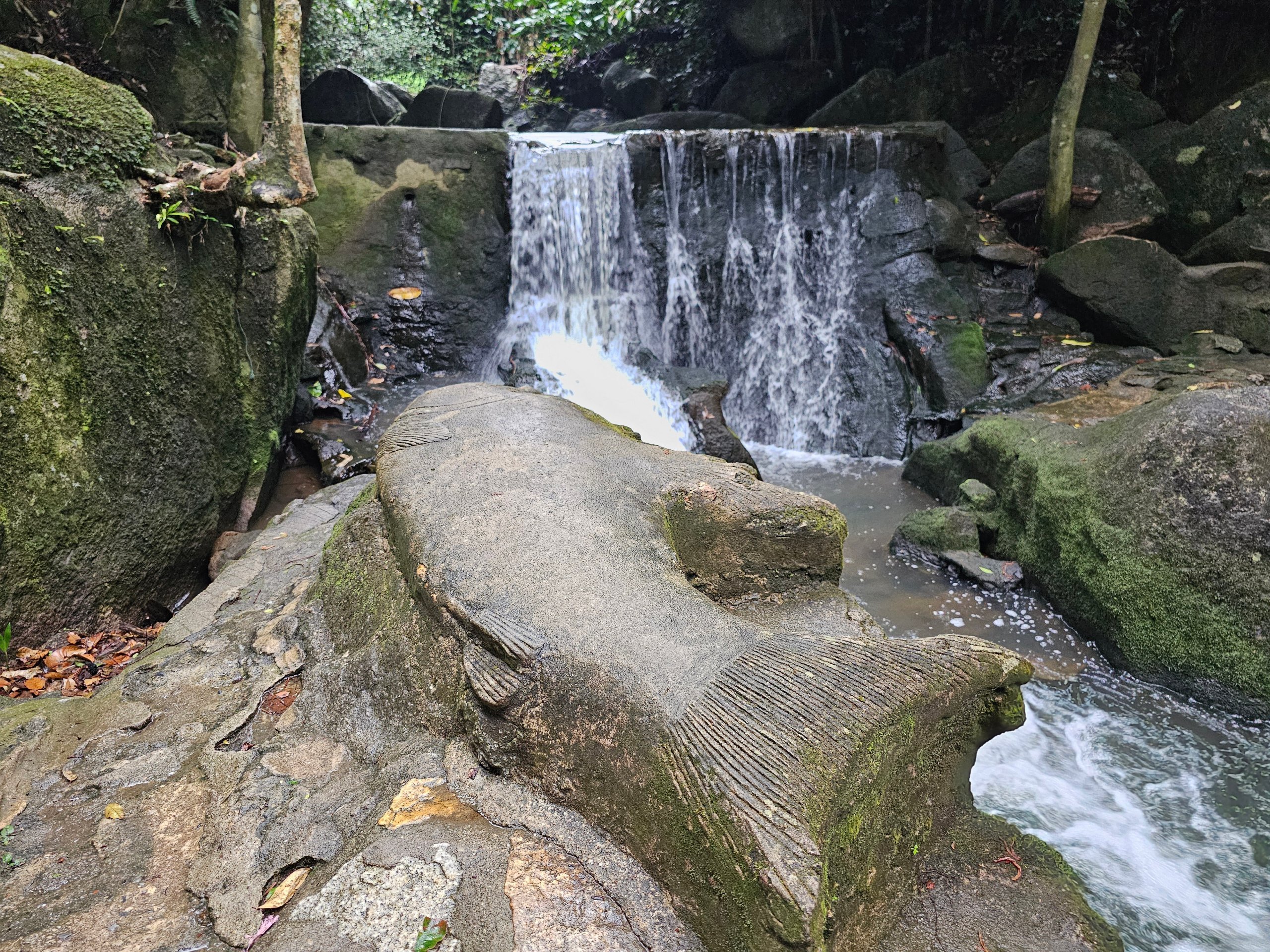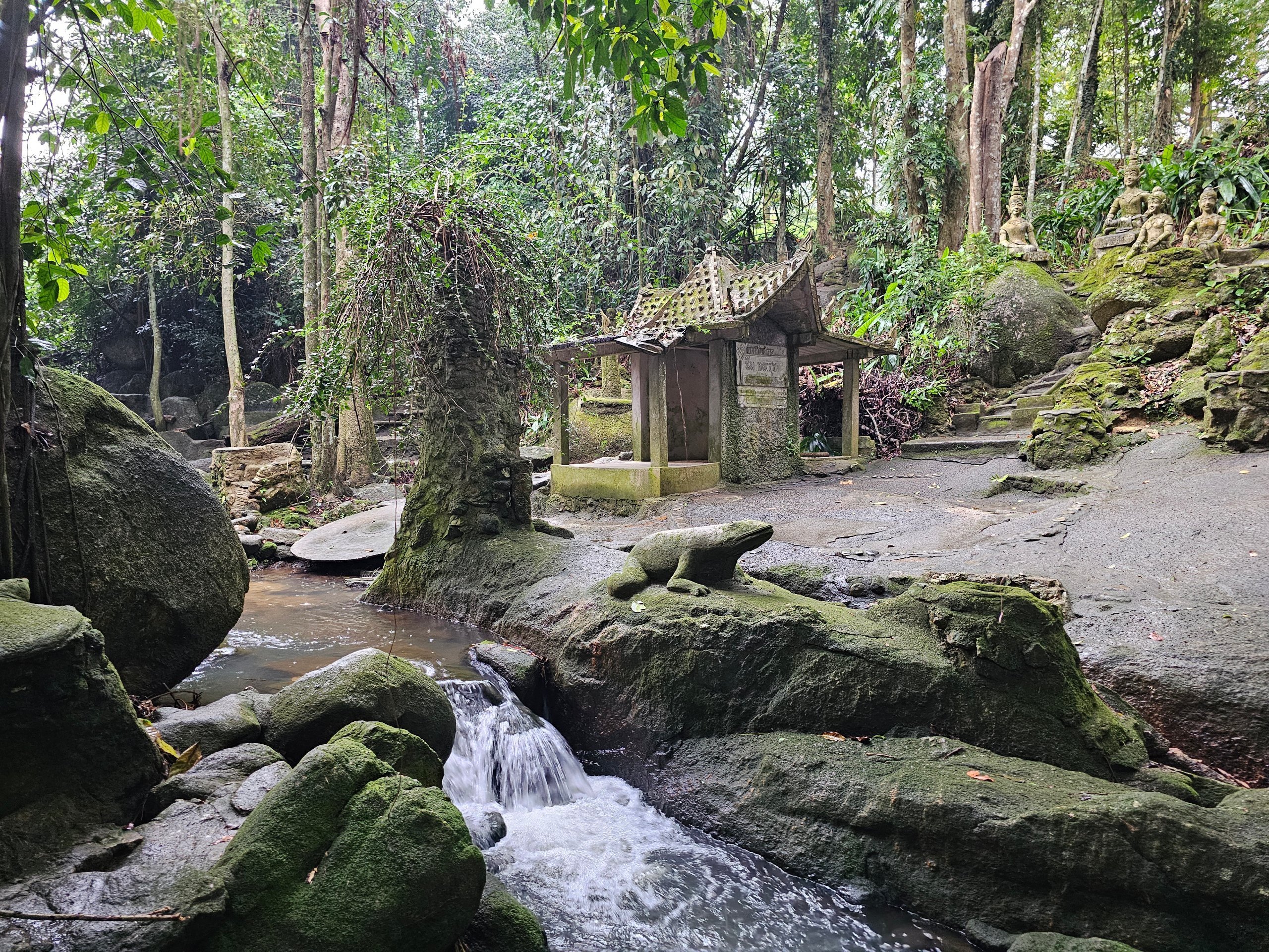 Während sich der Großteil der Insel um Sand, Bars, Diskotheken und Resorts dreht, befindet man sich hier plötzlich im Dschungel, an einem Bach und zwischen Dutzenden von Steinstatuen.