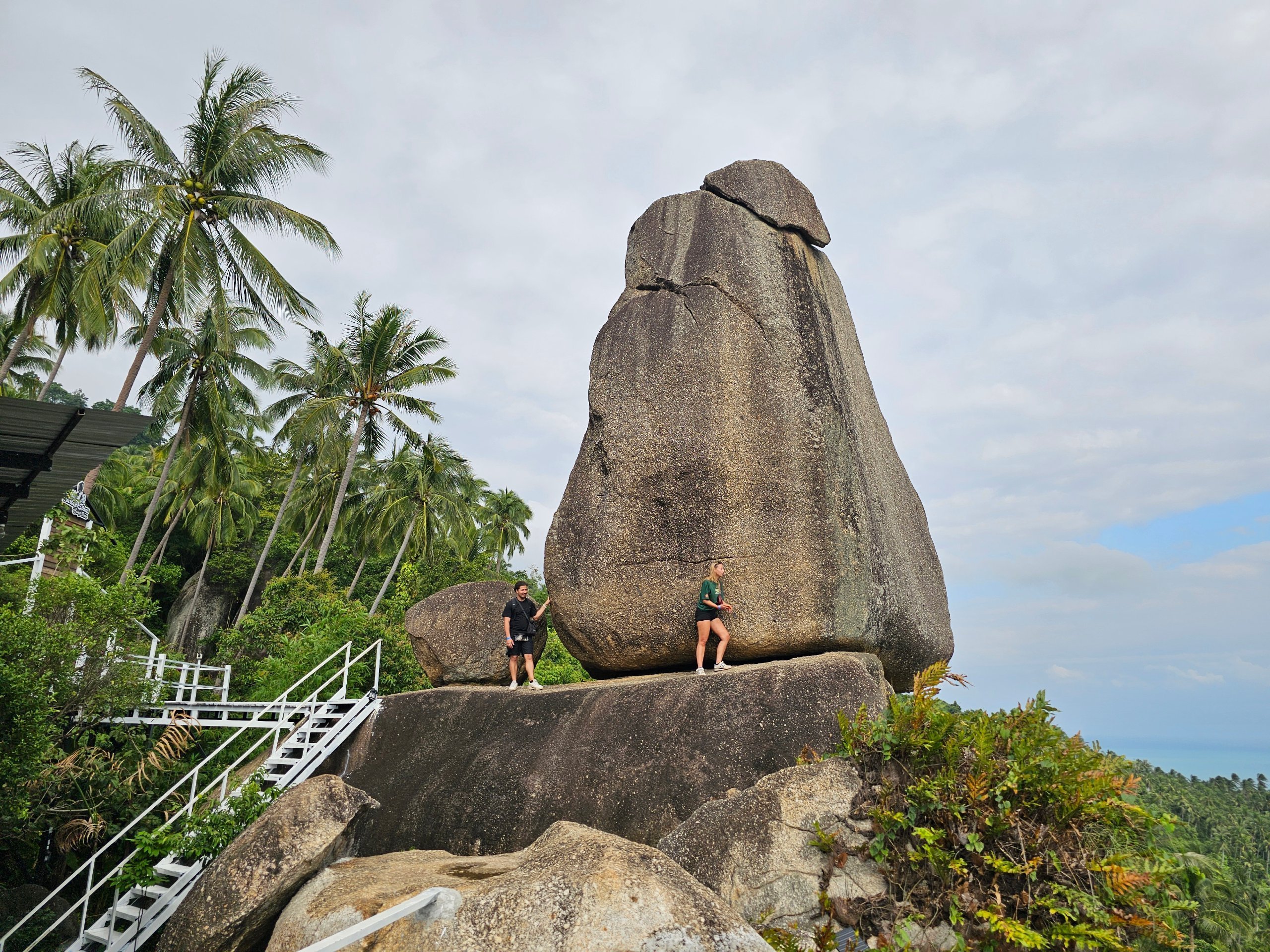 Dieser Stein liegt in 270 Metern Höhe und ist von weiteren Attraktionen umgeben, darunter der berühmte Pier mit der Hand über der Klippe - der bekannteste Aussichtspunkt auf Koh Samui.