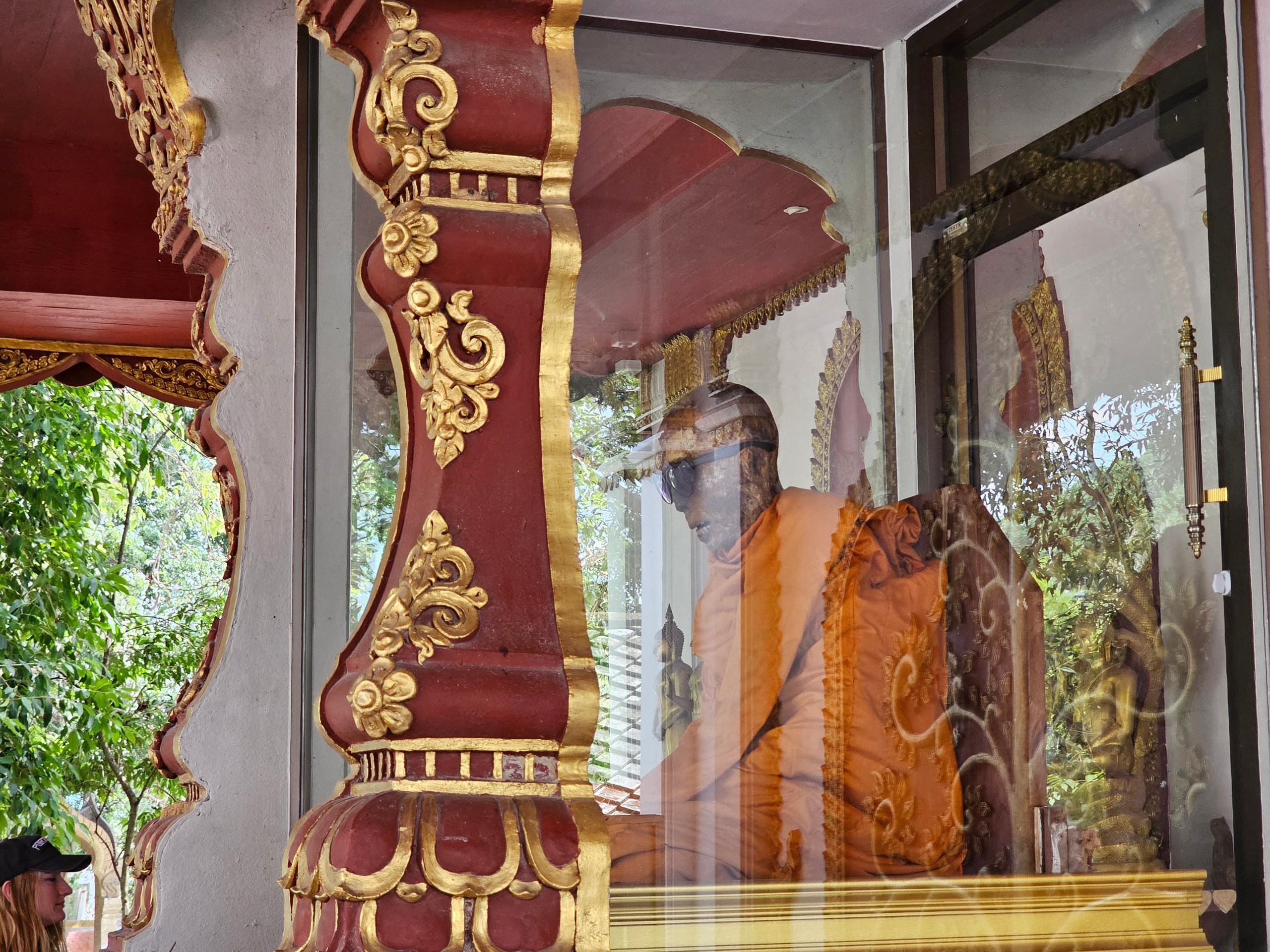 Im Inneren befindet sich der mumifizierte Körper des Mönchs Luang Pho Daeng, der in einer Meditationsposition starb - und noch immer in einem Glaskasten ausgestellt ist.