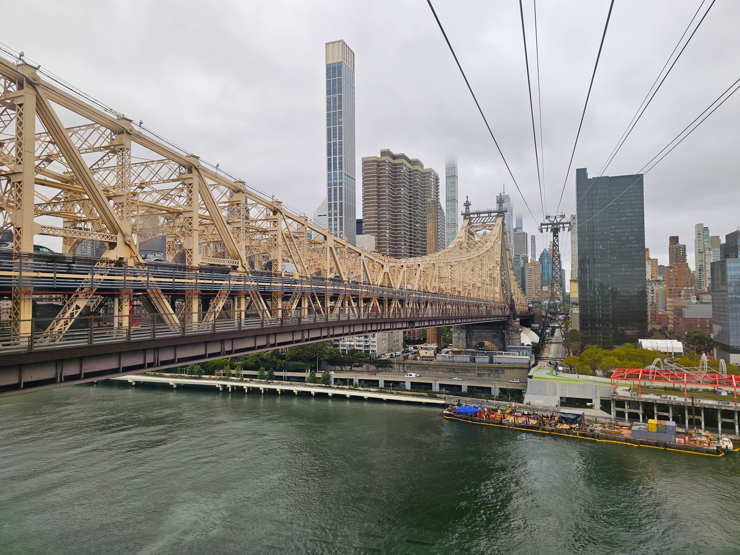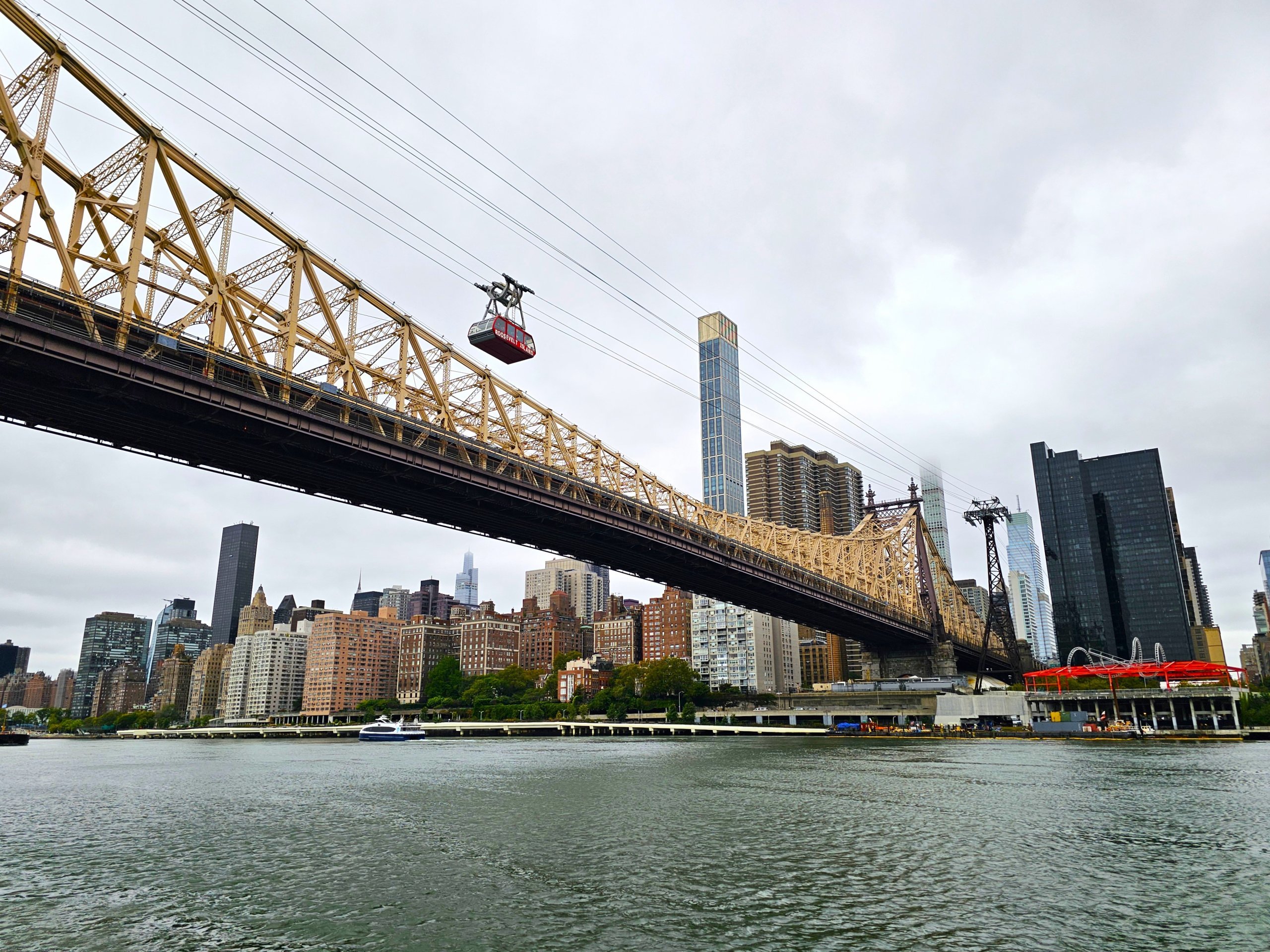 Von hier aus hat man auch einen herrlichen Blick auf die wunderschöne Queensboro Bridge mit ihrer Seilbahn in der Mitte der Insel.