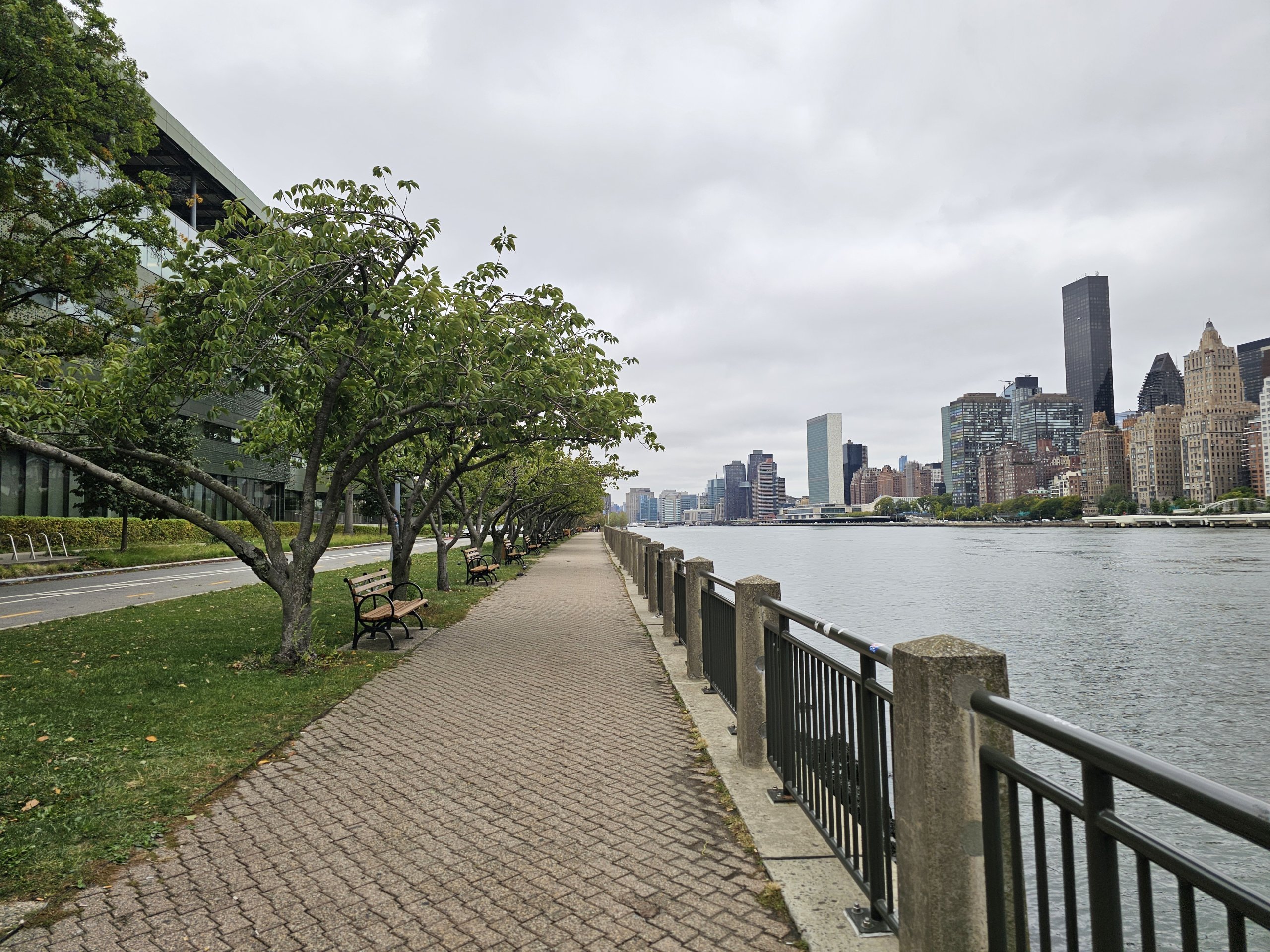 Roosevelt Island ist eine Oase der Ruhe inmitten von New York City, und auf beiden Seiten der Insel gibt es wunderschöne lange Spazierwege, die sich hervorragend zum Laufen eignen.
