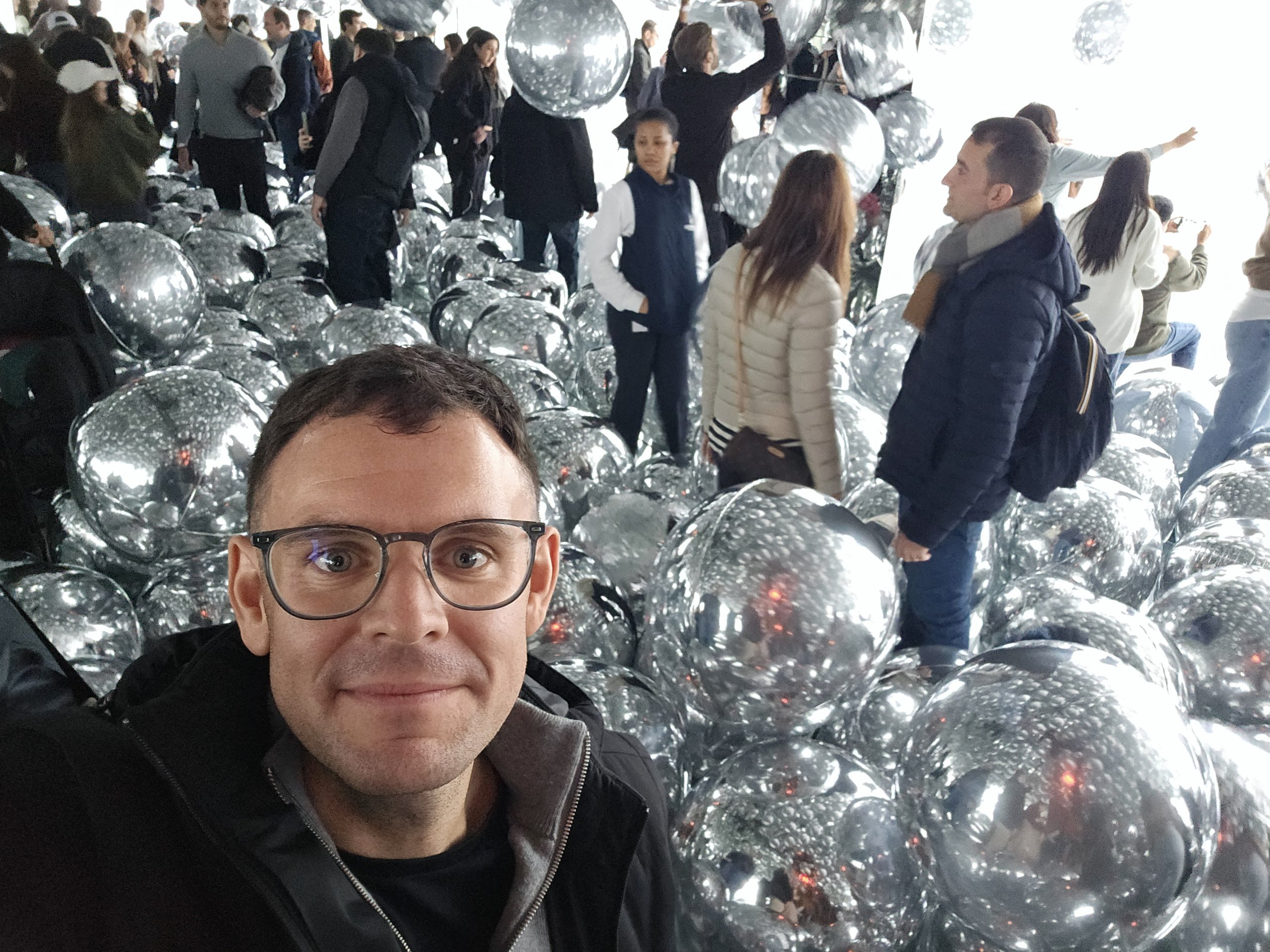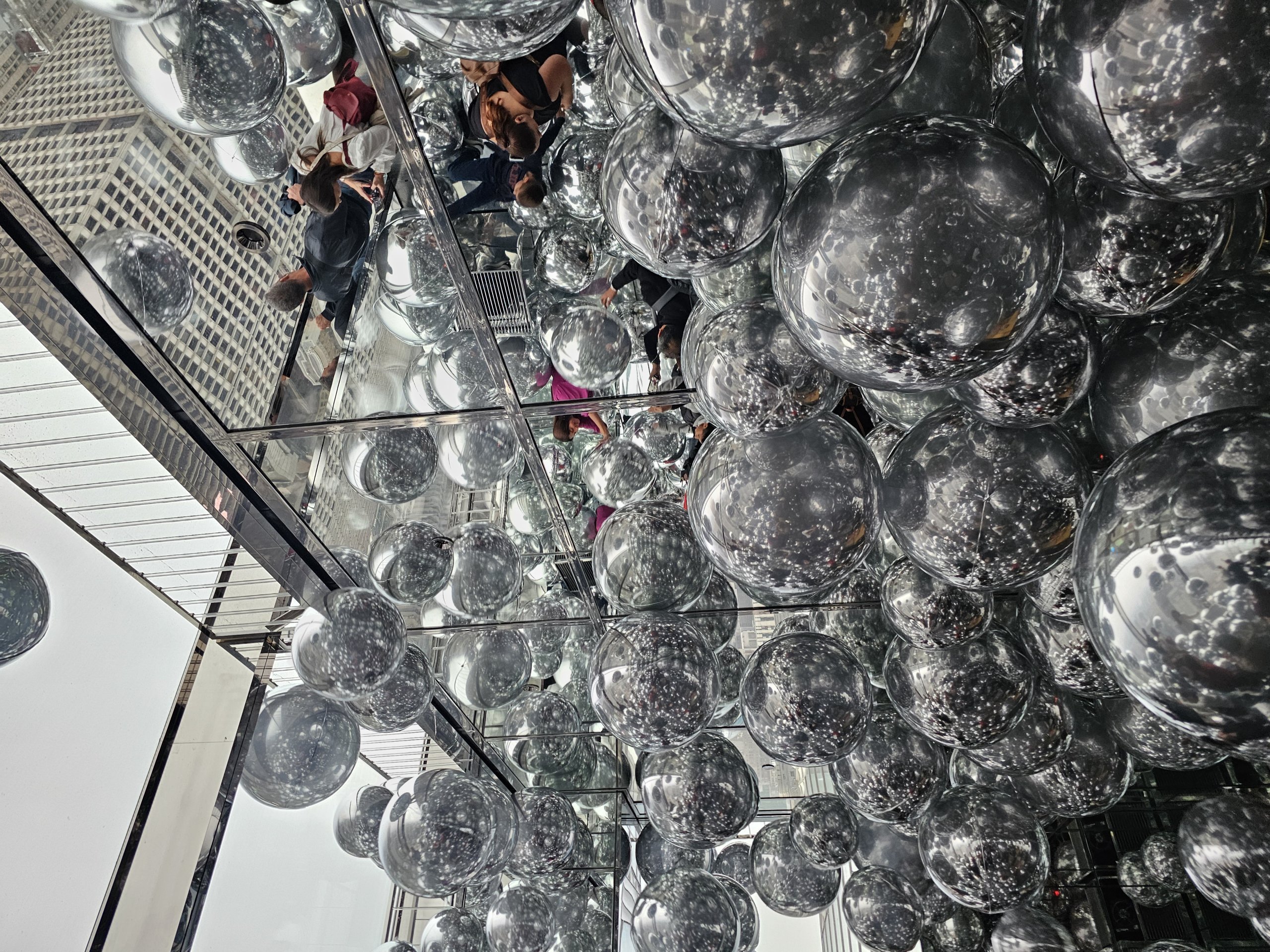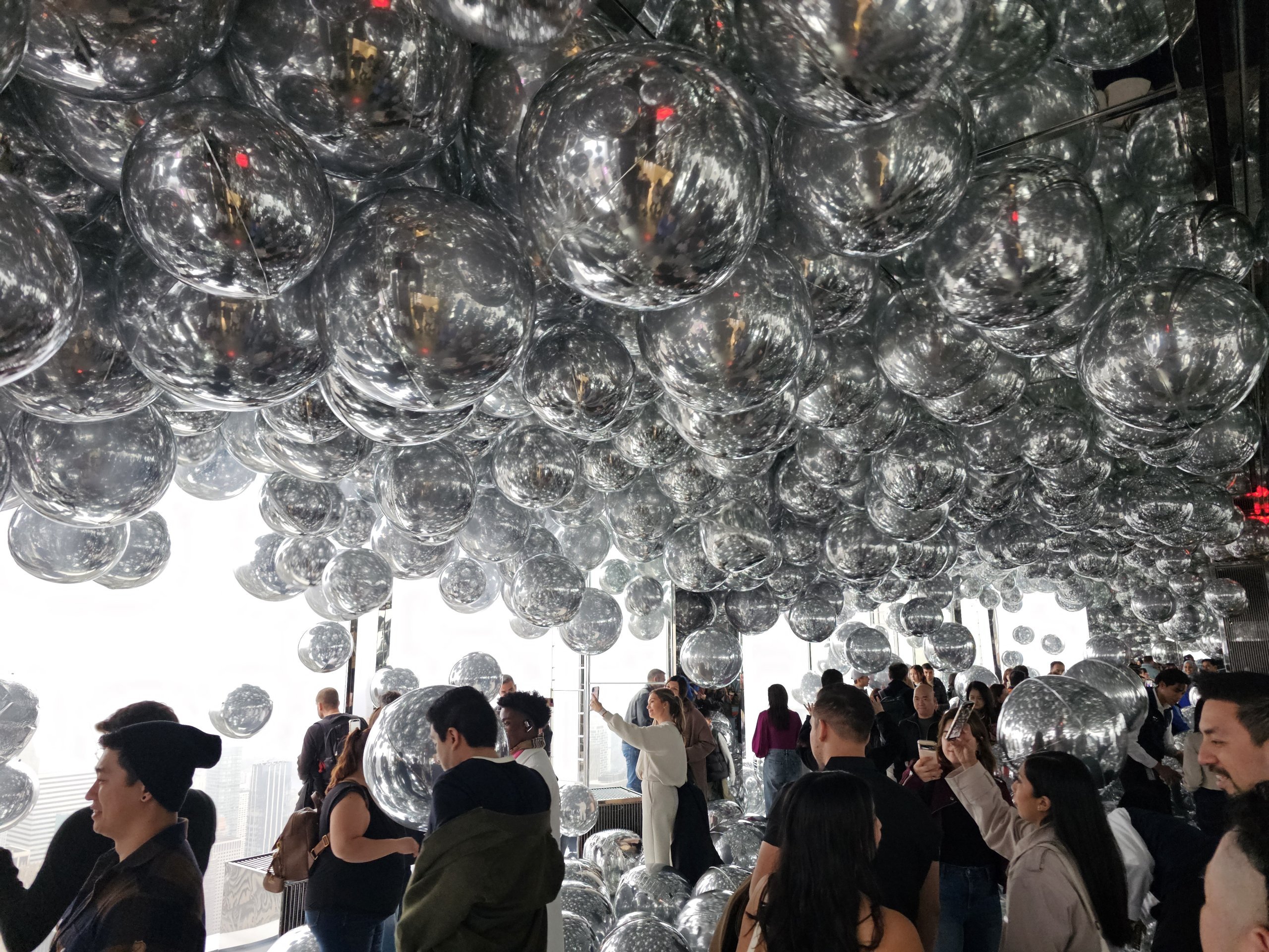 Der Ballonraum heißt Affinity ist mit bis zu 200 schwebenden silbernen Ballons gefüllt, in denen sich die Besucher und die Skyline der Stadt spiegeln.
