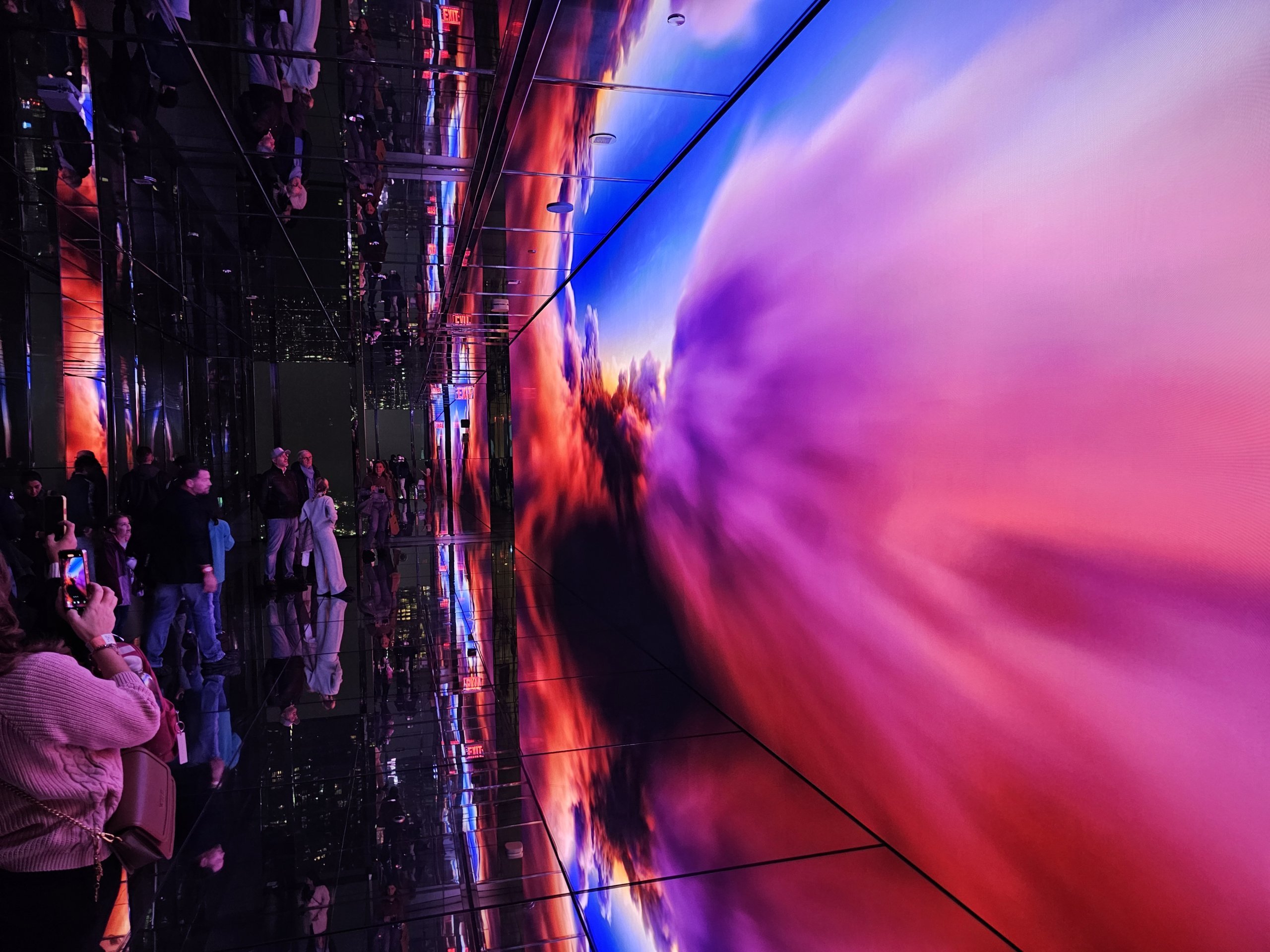 In einem angrenzenden Raum wird auf einem großen Bildschirm ein digitales Mosaik aus den Fotos der Gäste erstellt, die beim Betreten des Museums aufgenommen wurden. Es symbolisiert, dass die New Yorker Skyline zwar ikonisch ist, der wahre Zauber der Stadt aber in den Menschen liegt, die hier leben und jeden Tag kommen.